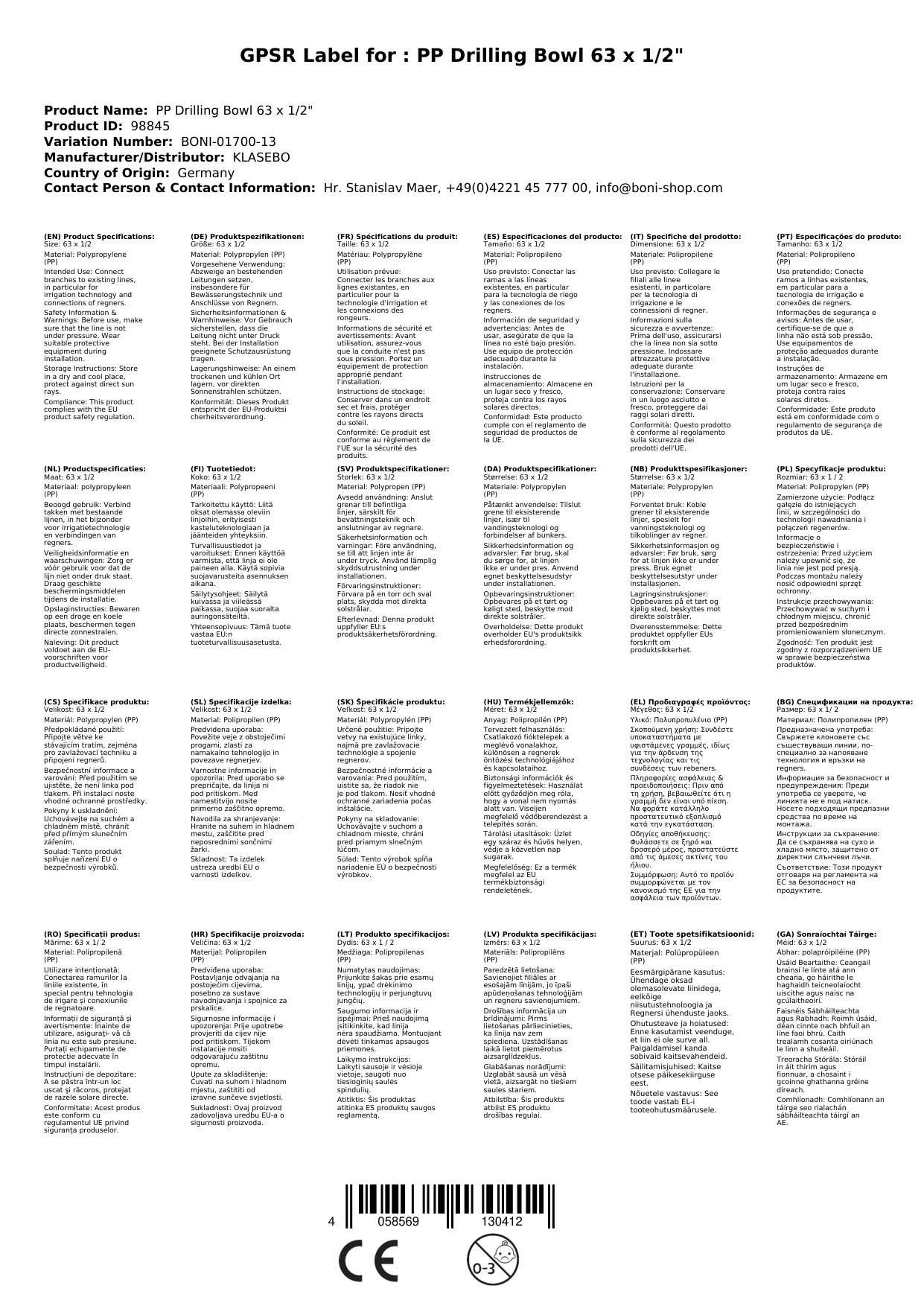 Cuireann ár gClampán Druileála réiteach iontaofa ar fáil do do feadáin uisce agus córais uisciúcháin. Le méid de 63mm x 1/2" agus déanta as plaisteach PP láidir, seasann sé le riachtanais laethúla. A bhuí le suiteáil éasca, is féidir leat craobhacha a shocrú go tapa agus go neamhchasta. Cén fáth a bhfuil sé seo tábhachtach duit: Sábhálann tú am agus iarracht le linn na suiteála agus baineann tú leas as nasc fada buan agus sábháilte.