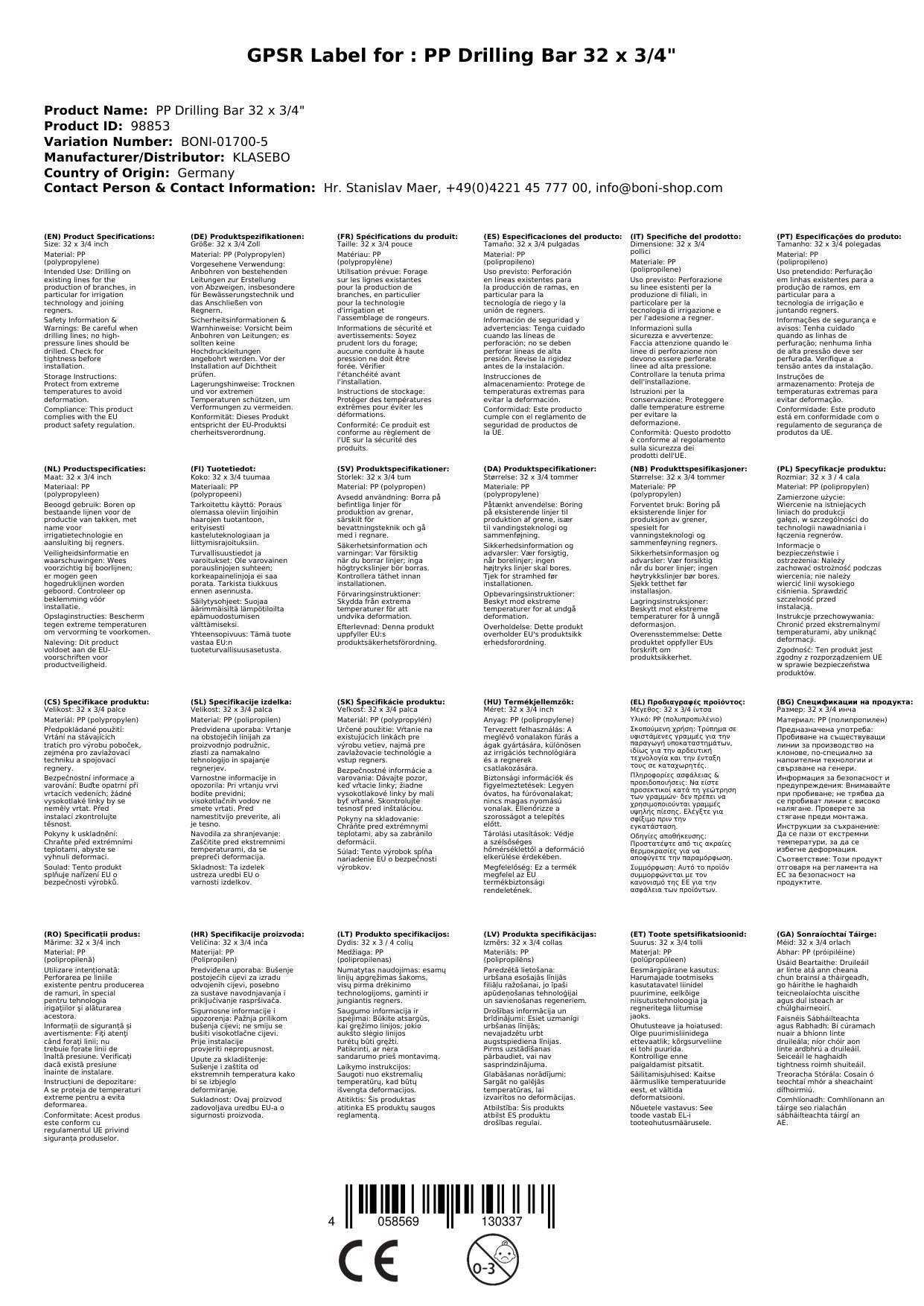 | Uimhir Ailt | BONI-01700-5 |