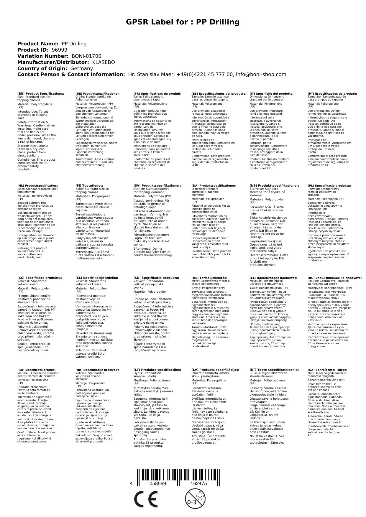 Anbohrschelle PE le haghaidh Píopa, Uiscebhealach, Boni-Shop