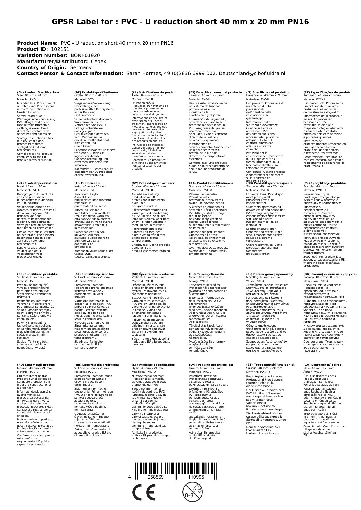 Cuir ceist chun níos mó a fhoghlaim faoin táirgePVC - U Reduktion kurz 40 mm x 20 mm PN16