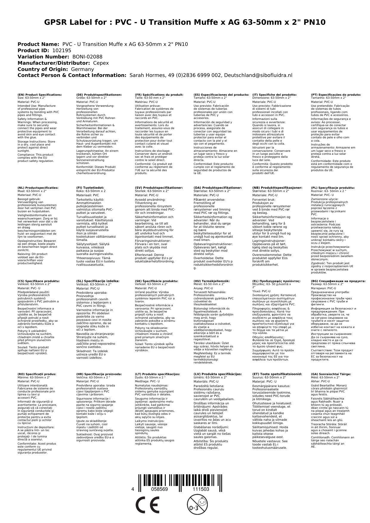 Tá an muinchille deartha go speisialta le haghaidh píopaí PVC. I gcás ábhar eile, molaimid na heilimintí nasctha oiriúnacha a úsáid.