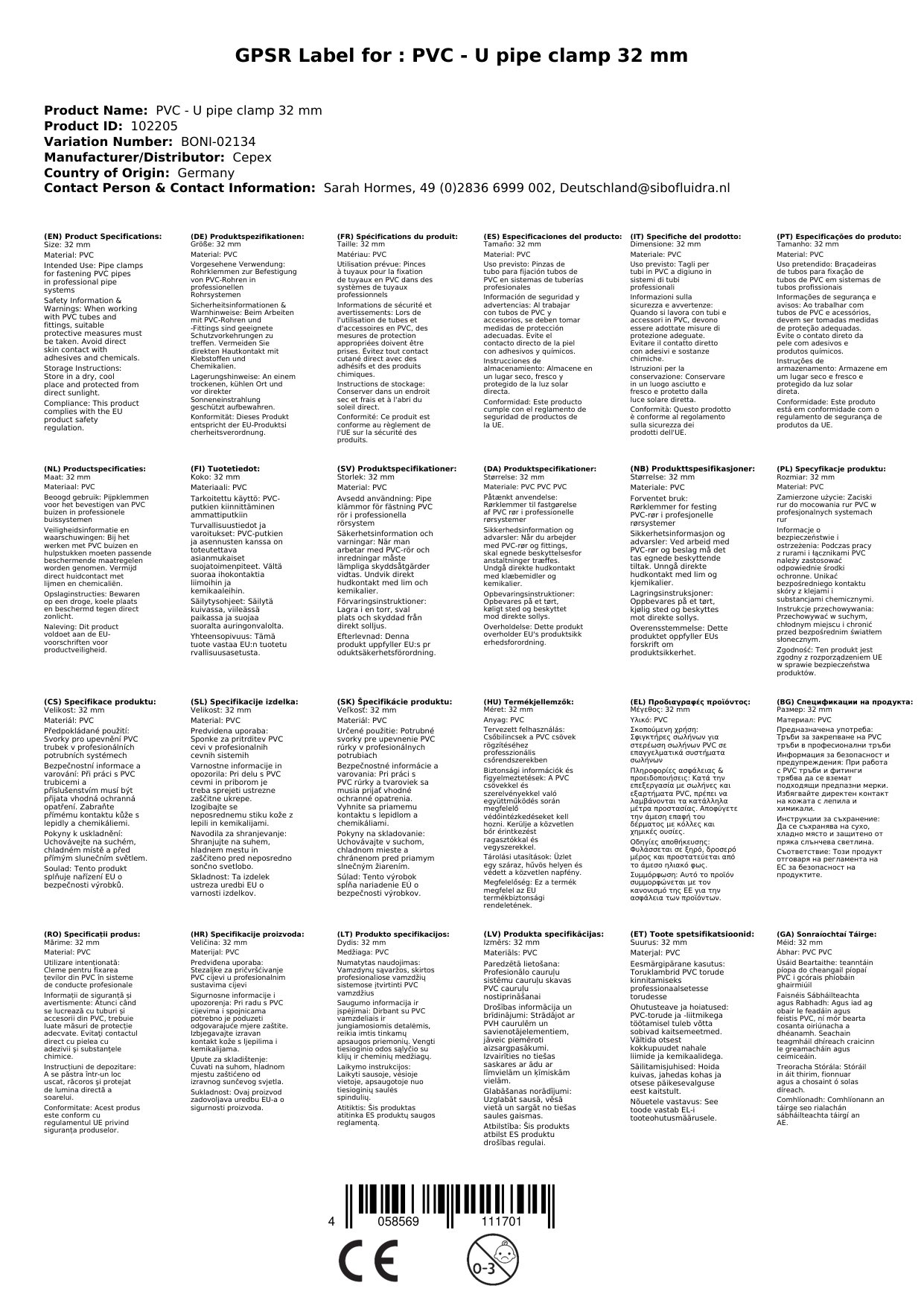 Cuireann an Clamp Píopa PVC-U 32 mm bealach iontaofa agus simplí ar fáil duit chun píopaí le trastomhas 32 mm a dhaingniú. Déanta as PVC crua ardchaighdeáin, tá sé frithsheasmhach in aghaidh éagsúlacht ceimiceán agus mar sin tá sé oiriúnach go hidéalach d’fheidhmchláir éagsúla. A bhuí leis an suiteáil éasca, is féidir leat do chórais píopaí a shuiteáil go tapa agus go gairmiúil. Ciallaíonn sé sin duit: Réiteach sábháilte agus fadtéarmach do do phíblínte.