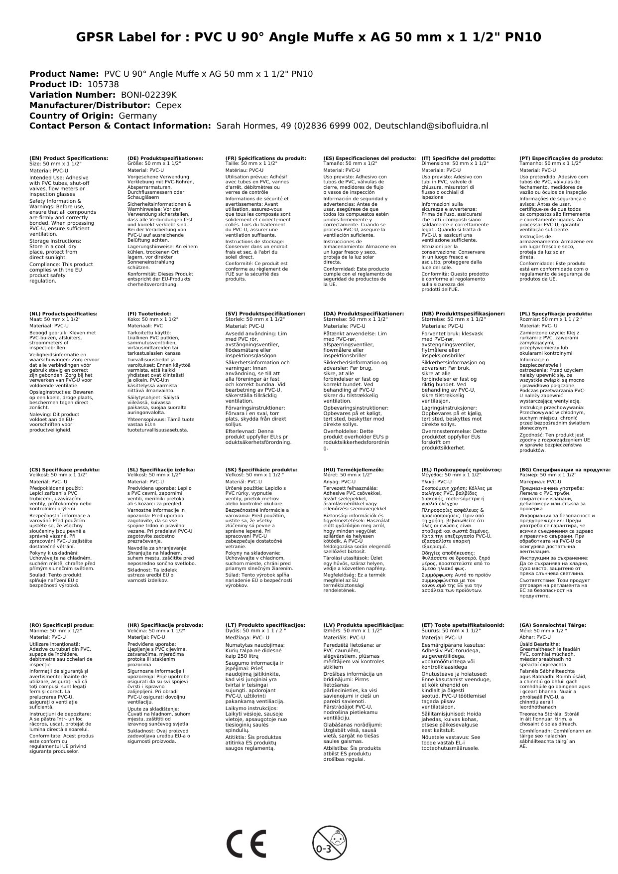 Cuireann ár PVC uillinn 50mm nasc iontaofa ar fáil do do chórais píopaí. Tá sé déanta as PVC-U láidir agus seasann sé le brú suas le 10 bar. Ceadaíonn an gluing simplí tionól tapa agus neamhchasta. Cén fáth go bhfuil sé seo tábhachtach duit: Faigheann tú táirge fada buan a oibríonn go hiontaofa fiú faoi dhálaí éilitheacha.