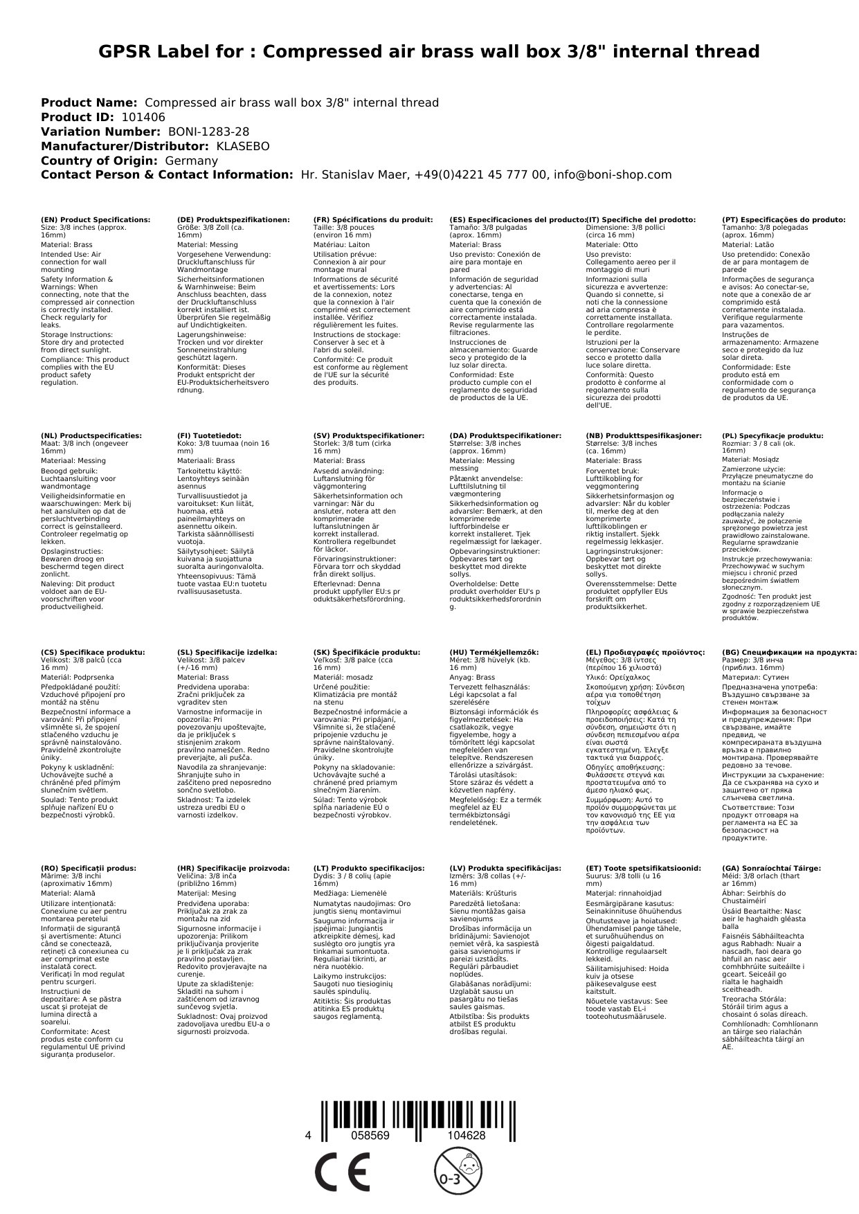 Dochtúir Balla Aeir Comhbhrúite Práis 3/8", Boni-Shop
