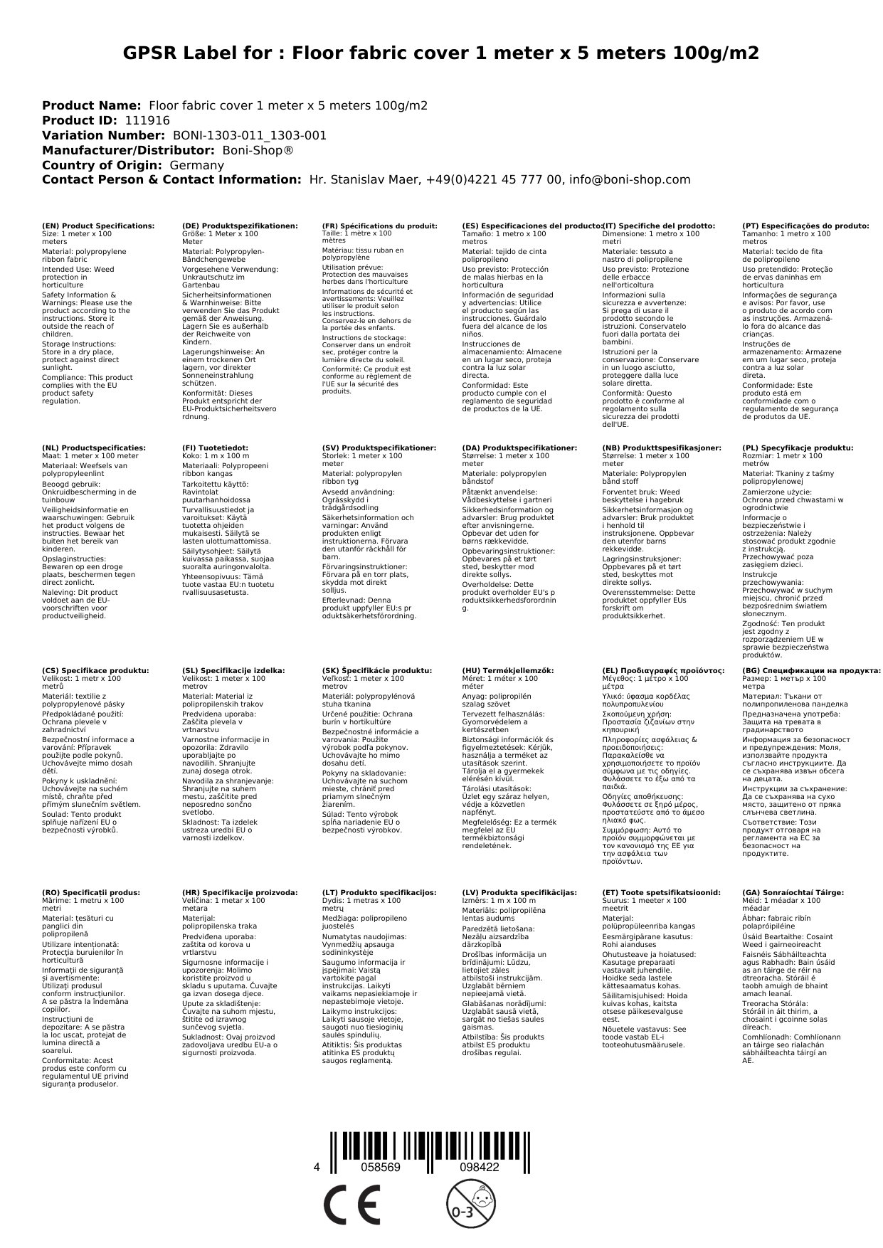 Fleece Clúdaigh, 1m x 5m, 100g/m², Cosaint Plandaí