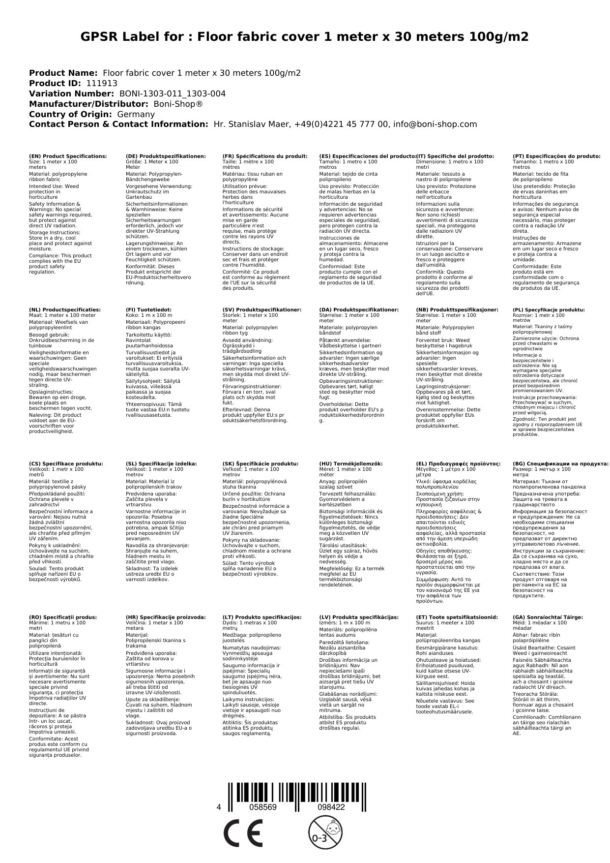 Fabraic Talún & Vlies Clúdaigh 1x30m, 100g/m²