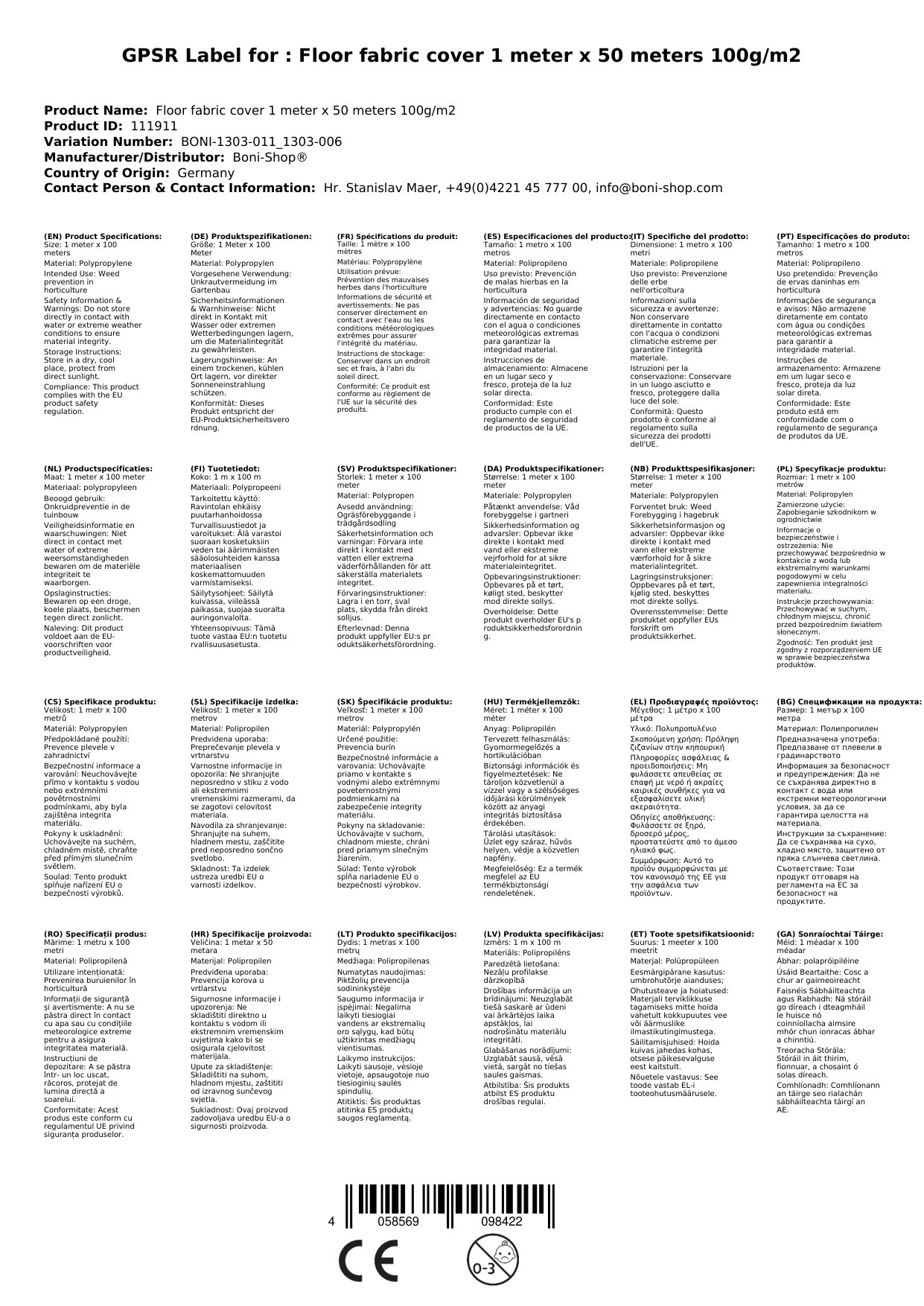 Bratach Fiailí 100g/m², 1m x 50m, Fabraic Talún Gairdín