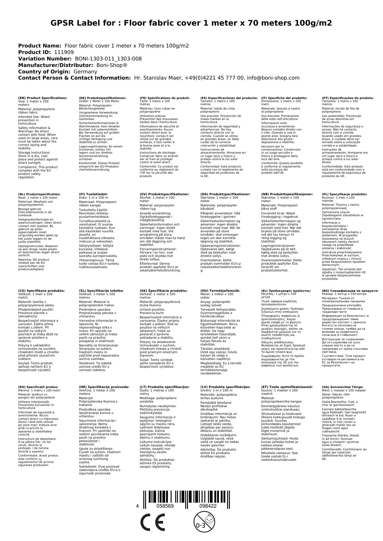 Tá ár bhfabraic talún agus ár bhflíosc clúdaigh déanta as polapróipiléin láidir (PP) agus tugann sé cosaint is fearr le meáchan dromchla de 100g/m². Tá sé UV-cobhsaithe ar feadh ré saoil de thart ar 5 bliana agus tá sé tréscaoilteach d'uisce le 16 l/m²/s. Cén fáth go bhfuil sé seo tábhachtach duit: Faigheann tú táirge buan, éifeachtach a chosnaíonn do phlandaí agus a ligeann don ithir análú ag an am céanna, rud a chabhraíonn le fás sláintiúil.