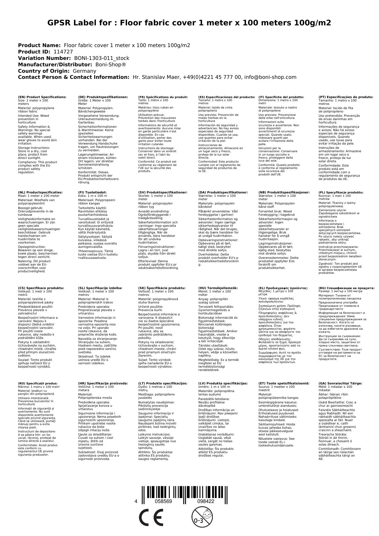 Tá ár bhFabraic Talún déanta as fabraic ribín polapróipiléine (PP) atá frithsheasmhach le dlús de thart ar 100 g/m². Tá sé UV-chobhsaithe ar feadh thart ar 5 bliana agus tréscaoilteach d'uisce le 16 l/m²/s. Éascaíonn an dath dubh le stríoca glasa marcála (15 x 15 cm) suíomh do phlandaí. Ciallaíonn sé seo duit: Táirge buan, láidir agus éasca le láimhseáil a chosnaíonn do phlandaí go barrmhaith agus a fhágann go bhfuil obair an ghairdín níos éasca duit.