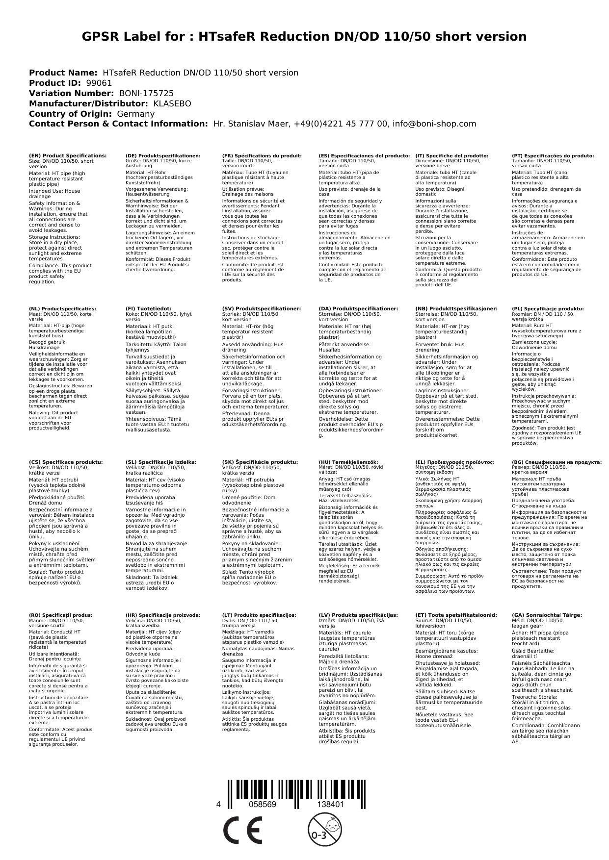 Tá an Laghdú HT deartha go príomha le húsáid laistigh d’fhoirgnimh. Le haghaidh úsáide lasmuigh, molaimid píopaí KG speisialta.