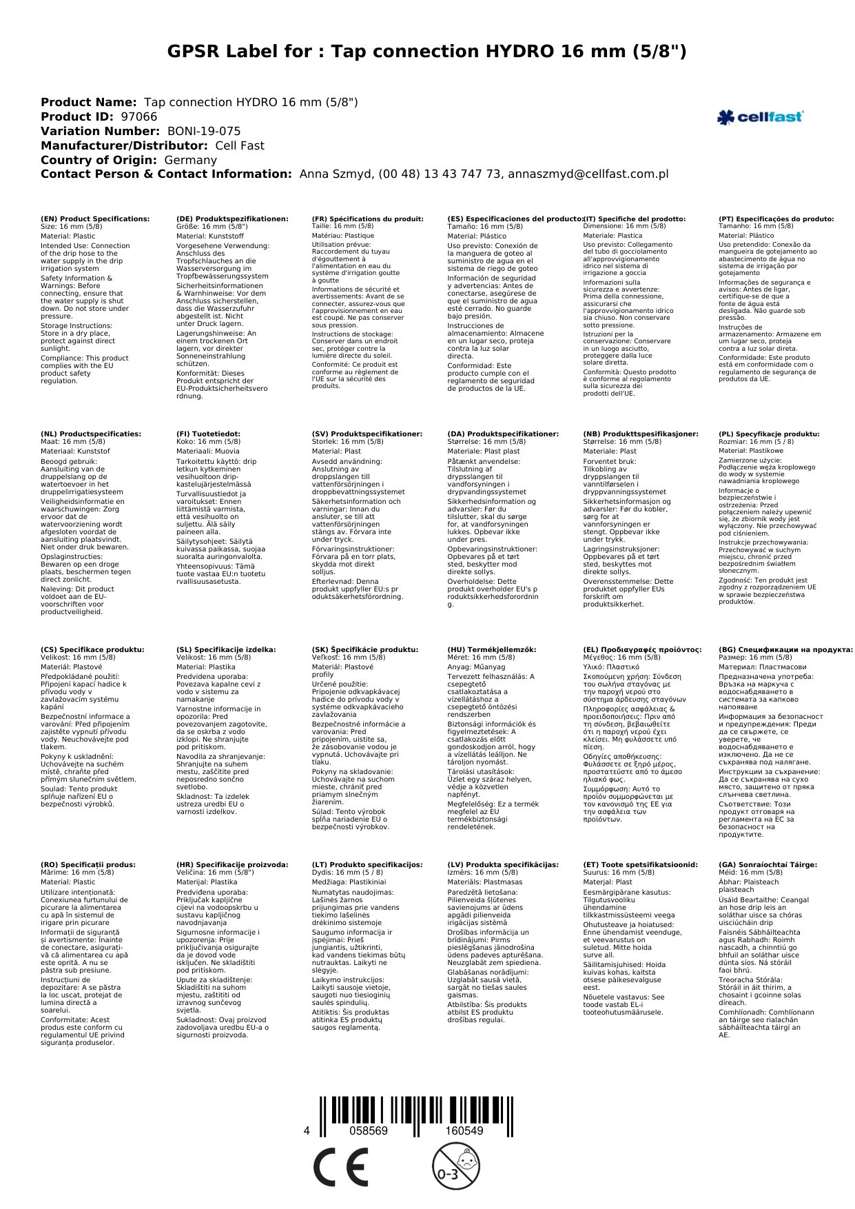 Cuireann ár gCeangal Sconna nasc iontaofa ar fáil duit do do chóras uisciúcháin drip. Le trastomhas de 16 mm (5/8"), tá sé oiriúnach go hidéalach do phíobáin drip coitianta. A bhuíochas leis an ábhar láidir, tá sé buan agus resistant do thionchair aimsire. Ciallaíonn sé seo duit: suiteáil shimplí agus réiteach buan do do uisciúcháin gairdín.