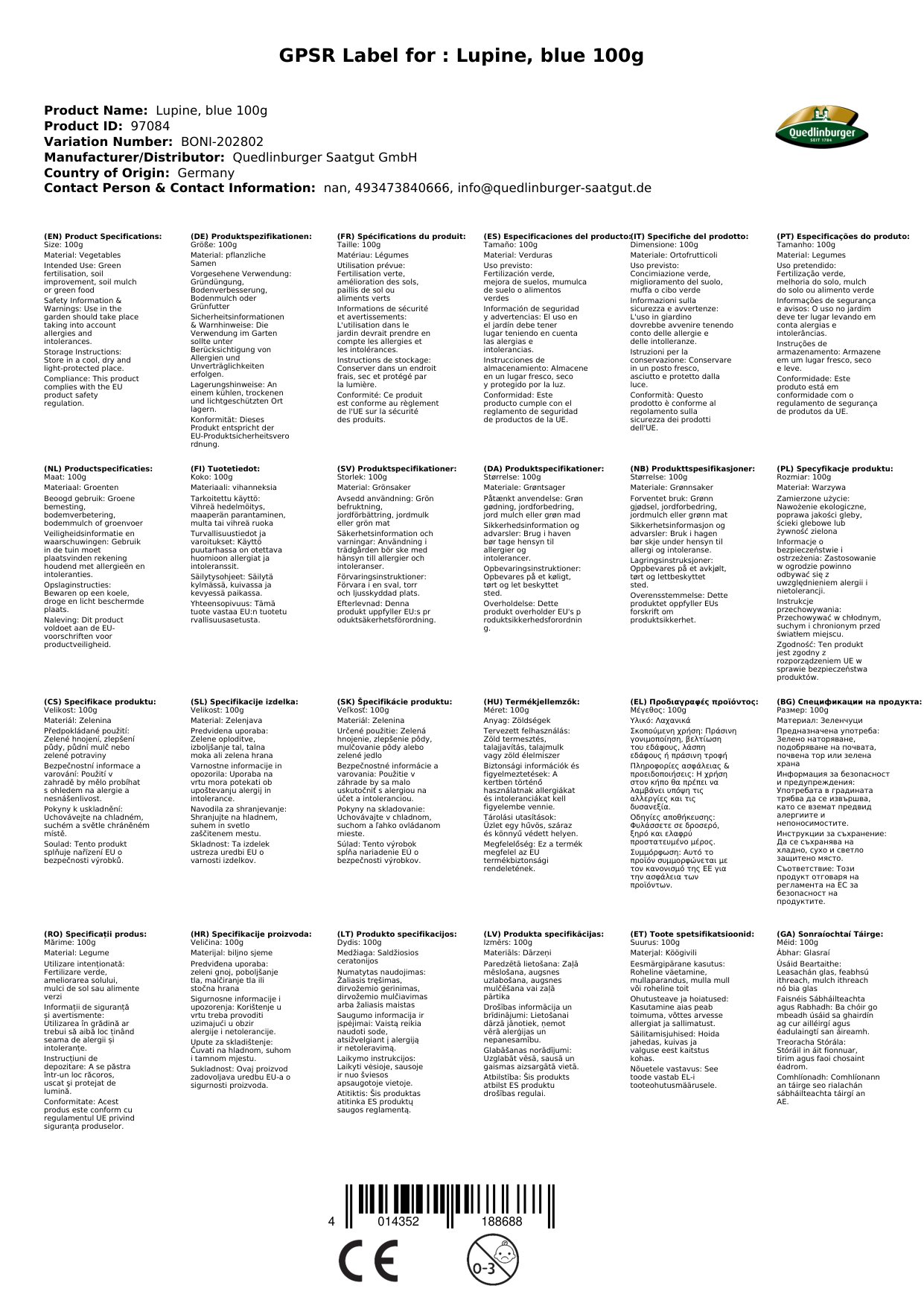 Cuir ceist chun níos mó a fhoghlaim faoin táirgeEolas: Planda glas-mhúirínte bliantúil le bláthanna gorma, a sholáthraíonn foinse bia den scoth d'fhormhór na bhfeithidí. Feabhsaitheoir ithreach an-mhaith le luach réamhtoraidh an-ard (bailitheoir nítrigine). Úsáidtear é mar mhúirín ithreach nó mar bheathú glas. Tá duilleoga agus gráin oiriúnach freisin le haghaidh beathaithe.