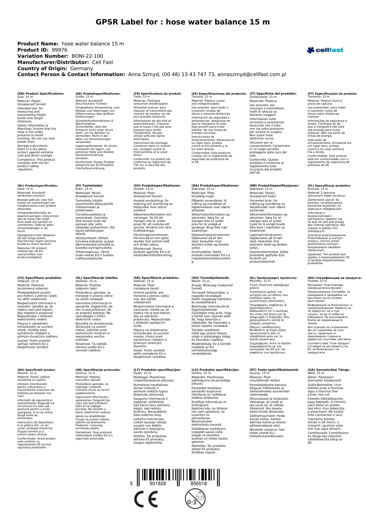 Cuireann ár leibhéal uisce feadán tomhais airde iontaofa agus cruinn ar fáil duit. Le fad 15 méadar agus tonnadóirí cruthúnas briste le scála milliméadar, tá sé oiriúnach le haghaidh úsáid ghairmiúil. Sábhálann tú am agus iarracht, mar is féidir leat difríochtaí airde a chúiteamh go tapa agus go héasca. Cén fáth go bhfuil sé seo tábhachtach duitse: Baineann tú torthaí cruinne amach gan teicneolaíocht chasta.