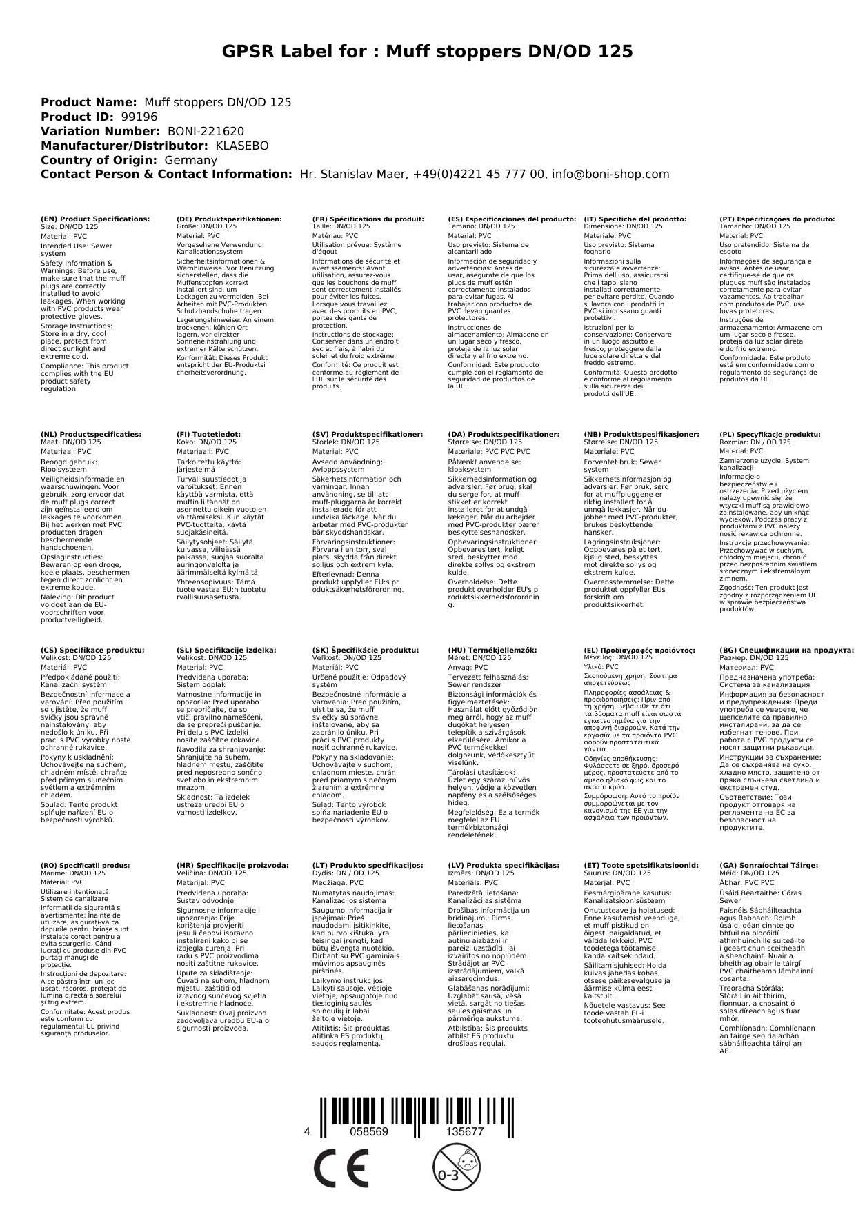 Sea, tá an Stopán Muinchille oiriúnach do gach píopa KG leis an méid ainmniúil DN 125 a chomhlíonann DIN EN 1401-1.