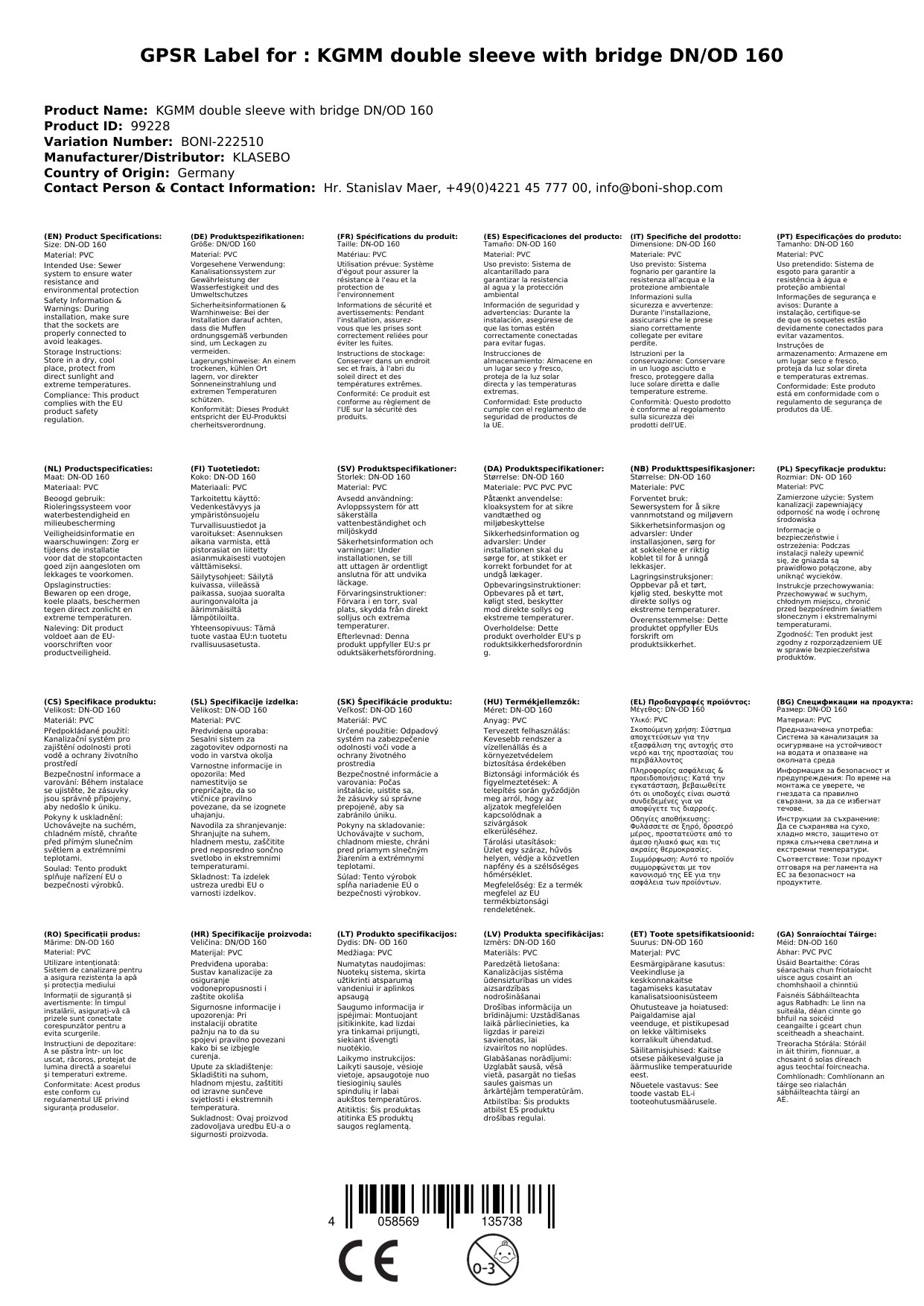 - Comhlíonadh Caighdeán: Comhlíonann Muinchille Dúbailte KGMM DIN EN 1401-1 agus dá bhrí sin comhlíonann sé na caighdeáin cháilíochta is airde.