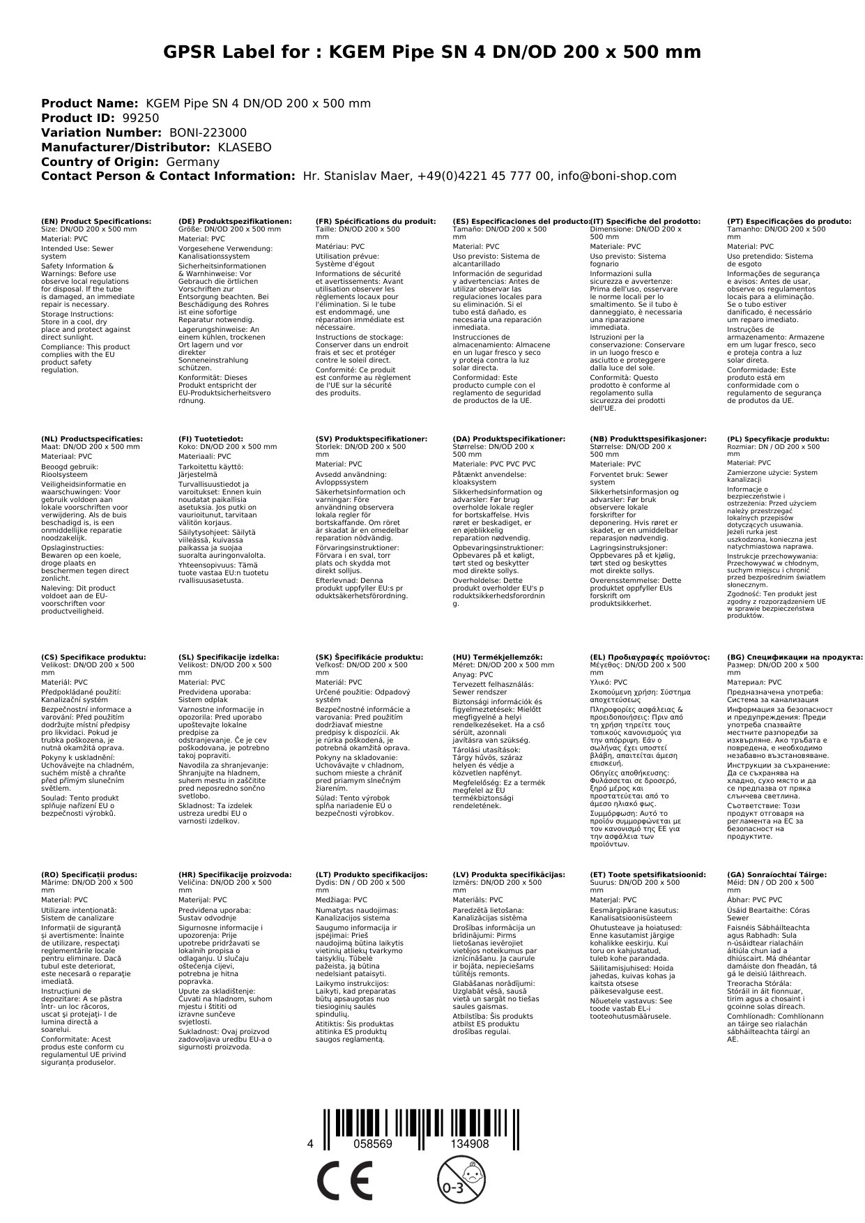 - Friotaíocht ard (SN4): Tá an píopa KG DN 200 deimhnithe de réir SN4 agus dá bhrí sin is féidir leis ualaí arda a sheasamh. Ciallaíonn sé sin diúscairt fuíolluisce fadtéarmach agus sábháilte duit.