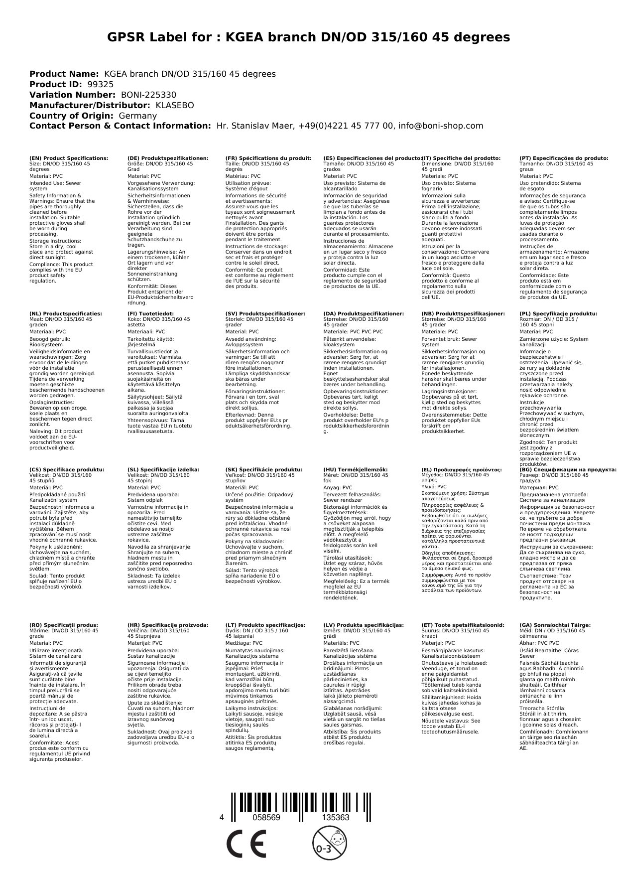 | PVC-U (weichmacherfrei) | 315/160 mm | 45 Grad |