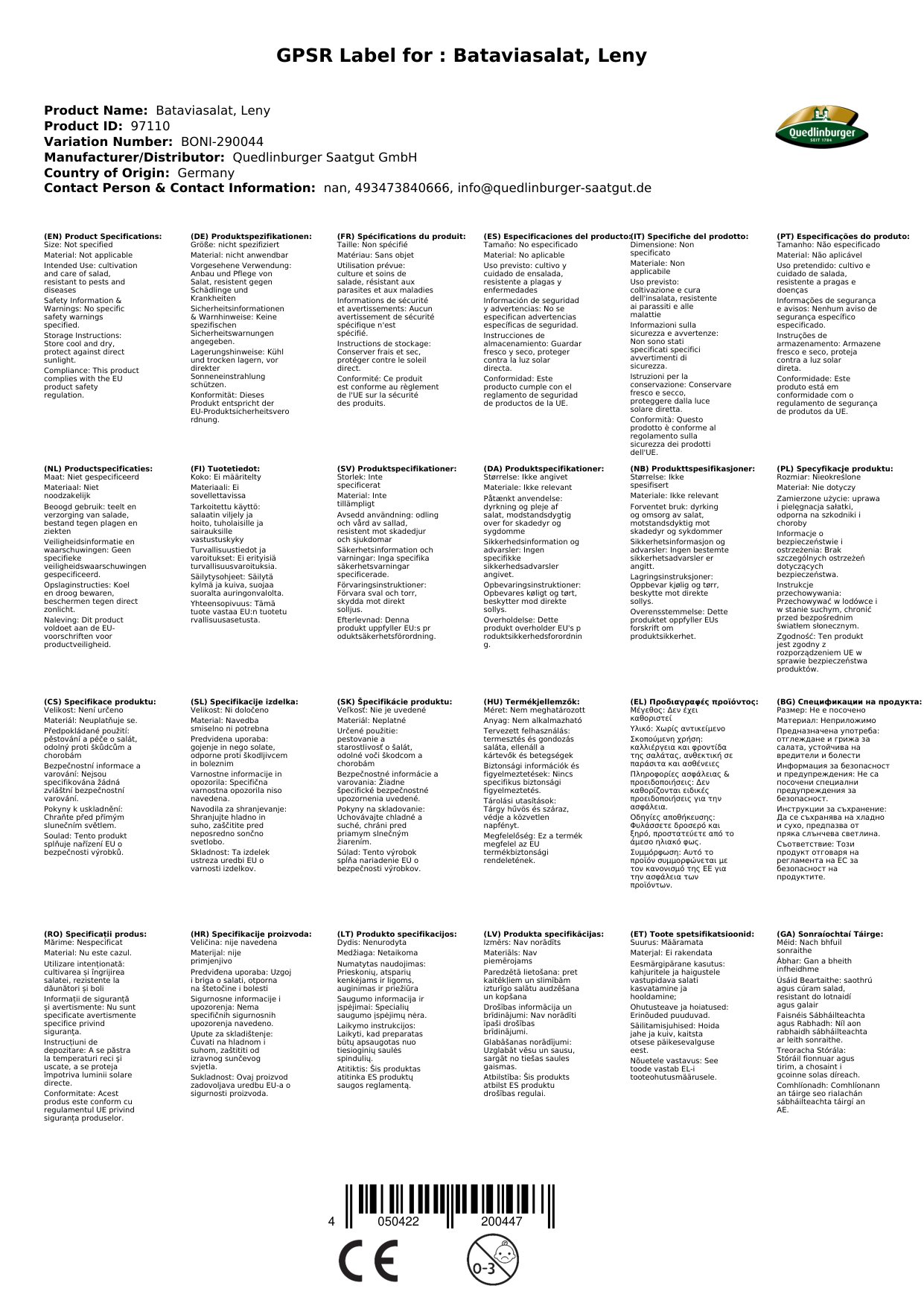 | Brand: | Quedlinburger |