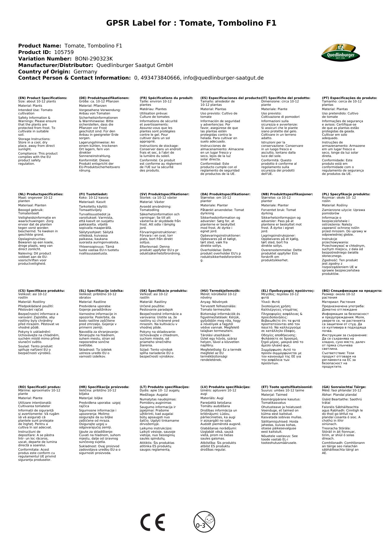 | Brand: | Quedlinburger Saatgut GmbH |