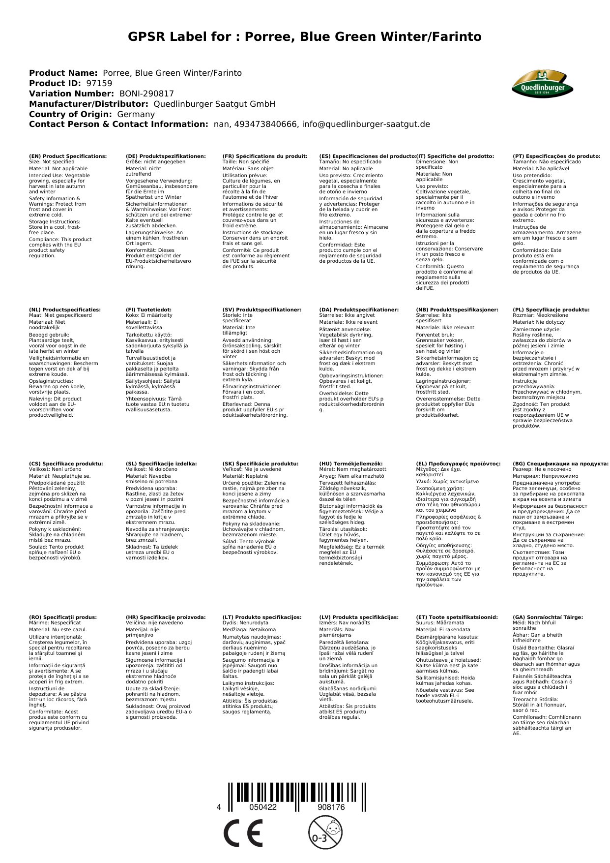 | Brand: | Quedlinburger |