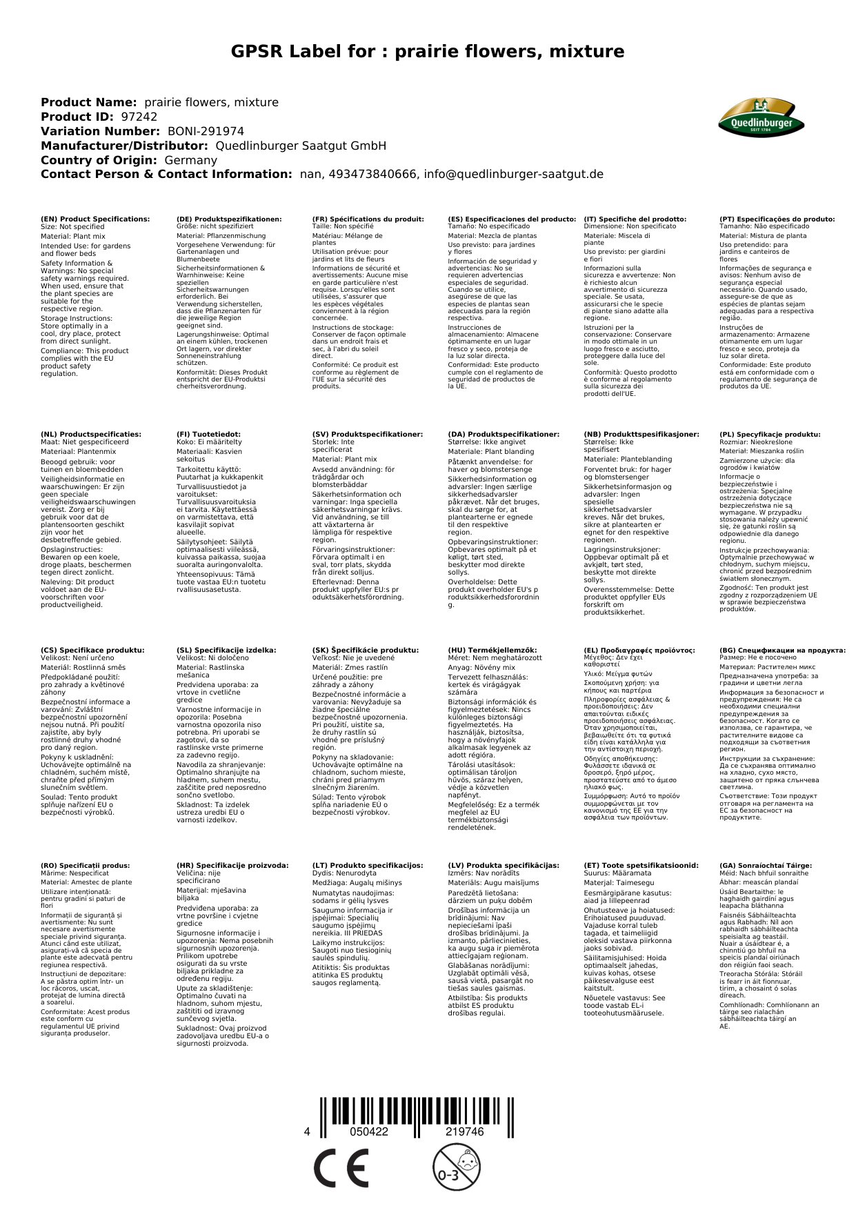 Tá ár meascán bláthanna prairie oiriúnach do shuíomhanna grianmhara le hithir dea-dhraenáilte. Germinate na síolta laistigh de 14 go 30 lá agus forbraíonn siad airde fáis de 40 go 80 cm. Cén fáth go bhfuil sé seo tábhachtach duit: Faigheann tú meascán bláthanna láidir agus éasca le cúram a fheabhsaíonn do ghairdín thar go leor míonna.