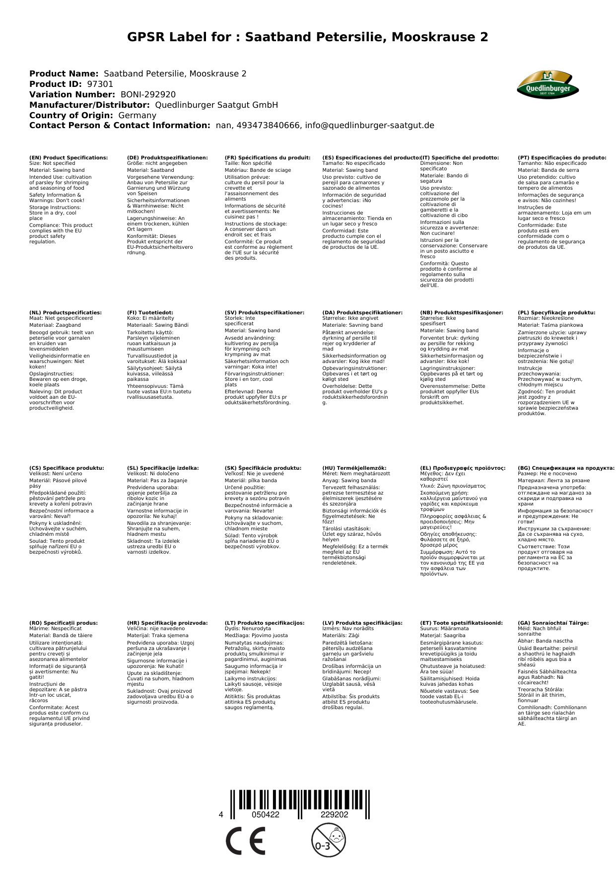 Leis an síol peirsil Mooskrause ó Boni-Shop, beidh cur na síolta chomh simplí le pie! Bain sult as peirsil bhlasta, fhíneáilte ó do ghairdín féin nó ó bhalcóin. Cinnteoidh an síolráin an fad plandaí is fearr agus sábhálfaidh sé an caolú trioblóideach duit. Ní raibh garraíodóireacht chomh héasca sin riamh!
