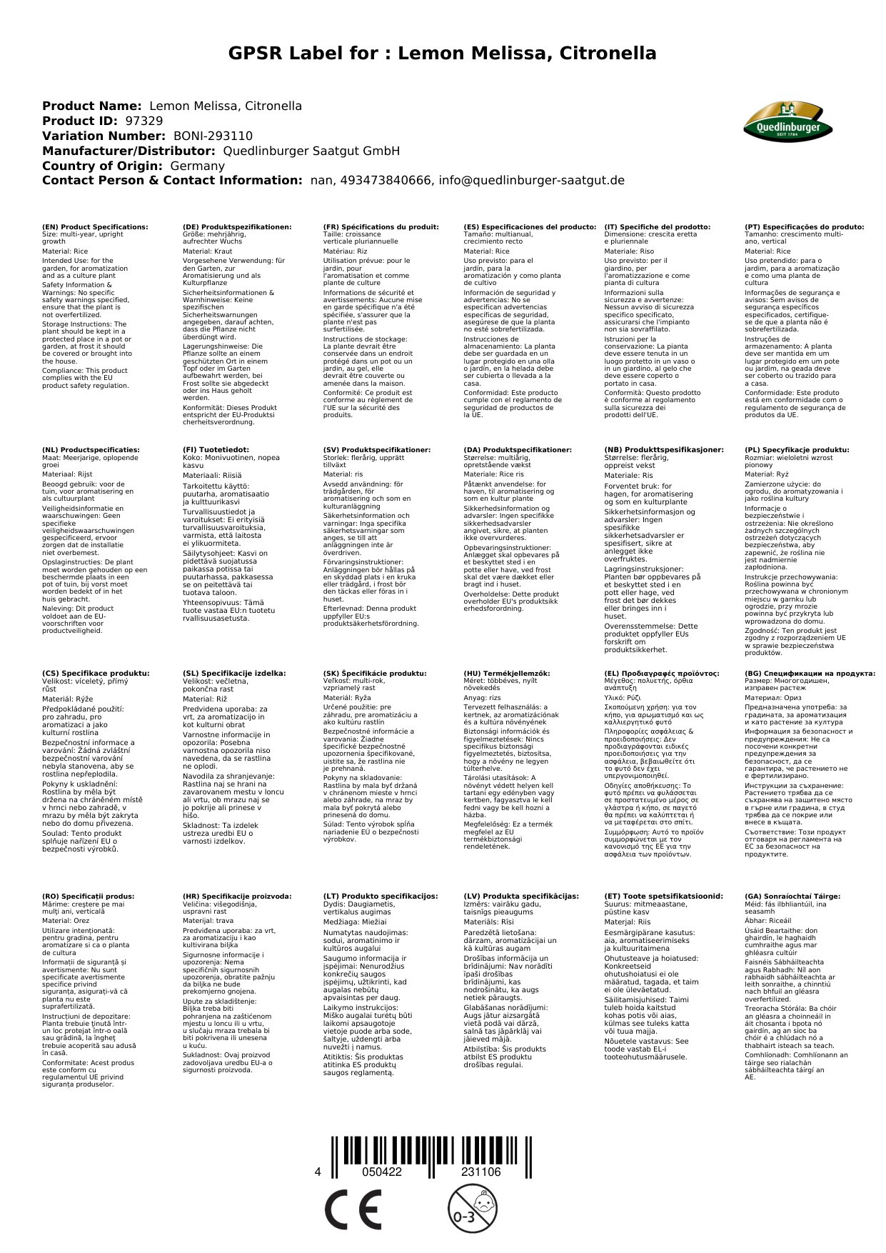 Is planda ilbhliantúil í an lus an chromchinn a bhfuil boladh dian líomóide aici. Tá sí crua geimhridh agus is féidir í a fhás amuigh faoin aer agus ar leac na fuinneoige. Mar gheall ar a cion ard d'olaí riachtanacha, is luibh choitianta í le haghaidh tae, breiseáin folctha agus chun miasa a bhlaistiú. Ciallaíonn sé seo duit planda atá éasca le cúram agus ilúsáideach a thabharfaidh áthas duit ar feadh na bliana.