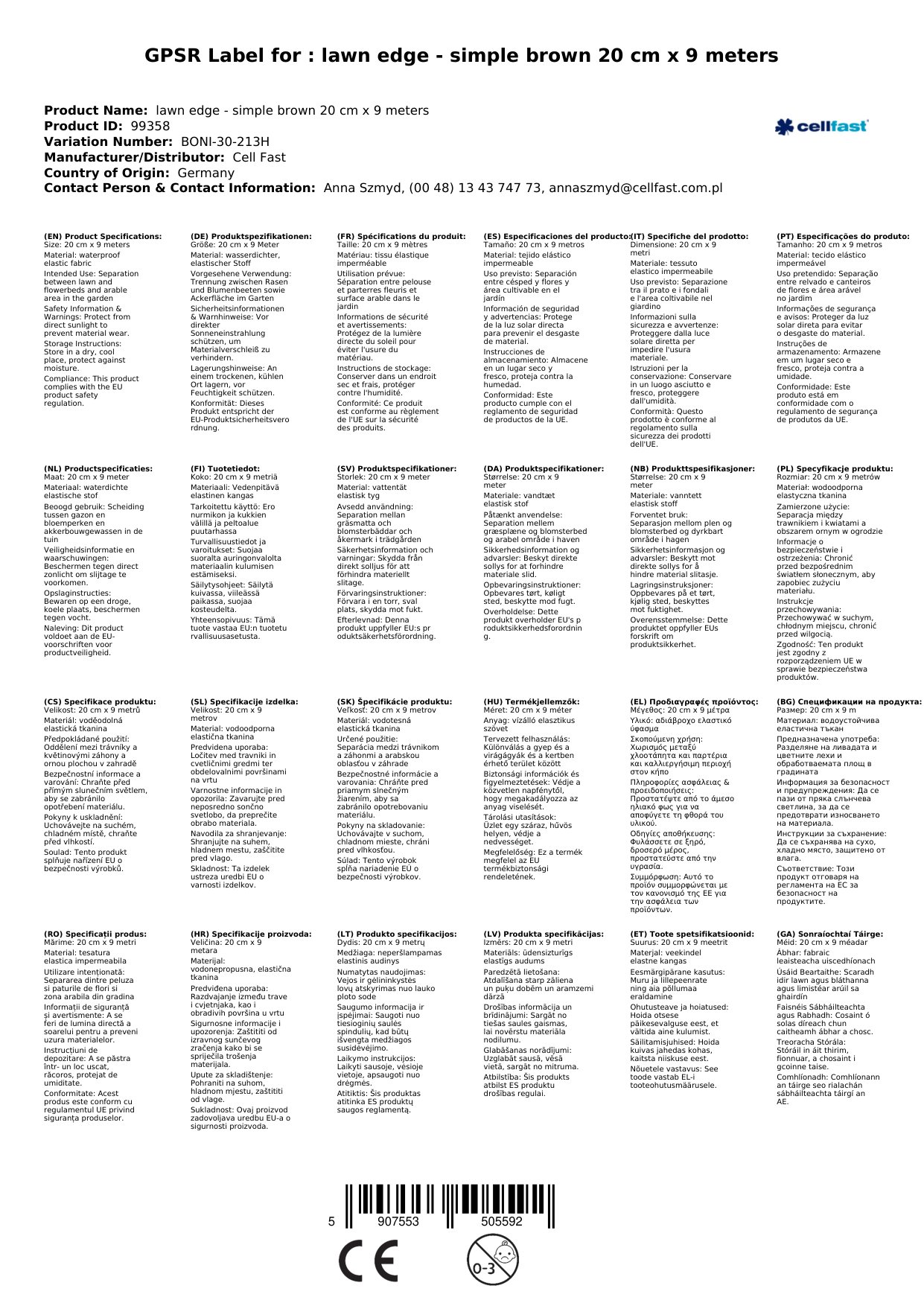 Tá an imeall faiche seo déanta as ábhar uiscedhíonach, leaisteach, rud a choscann fás féir gan iarraidh. Scarann sé an féar ón gcuid talmhaíochta de do ghairdín agus de na leapacha bláthanna. Tá sé 20cm ar airde agus 9m ar fad. Cén fáth go bhfuil sé seo tábhachtach duit: cabhróidh sé seo leat cuma néata a choinneáil ar do ghairdín gan mórán iarrachta.