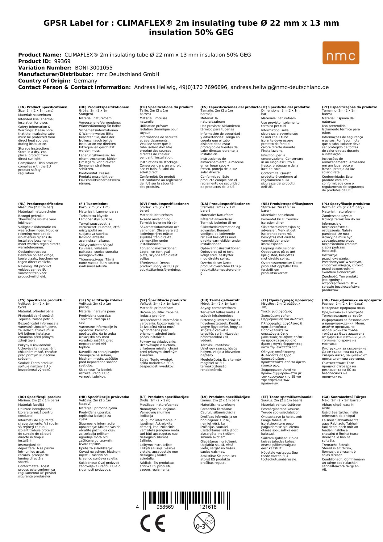 Píobán inslithe 2m, Insliú Píopaí 22mm x 13mm, Insliú teasa píopaí