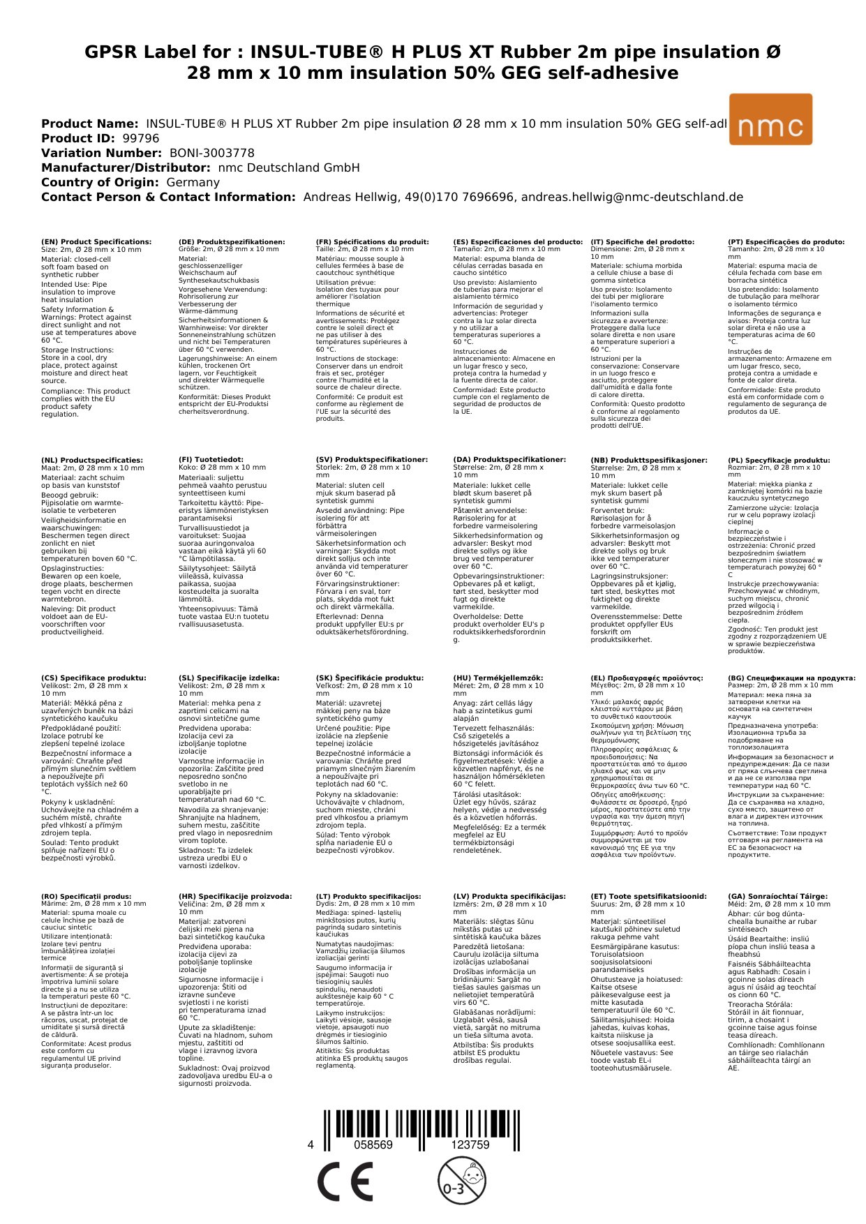 Cuir ceist chun níos mó a fhoghlaim faoin táirgeInsliú píopaí, Insliú rubair, Ø 28 mm x 10 mm, féinghreamaitheach, 2m