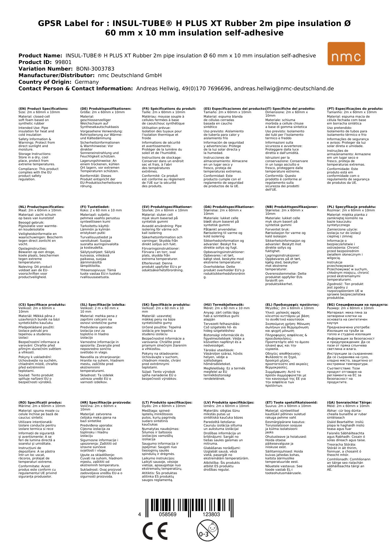 Cuir ceist chun níos mó a fhoghlaim faoin táirgeInslithe píopa rubair, Inslithe píopa féinghreamaitheach, Ø 60 mm x 10 mm, 2m, inslitheoir píopaí