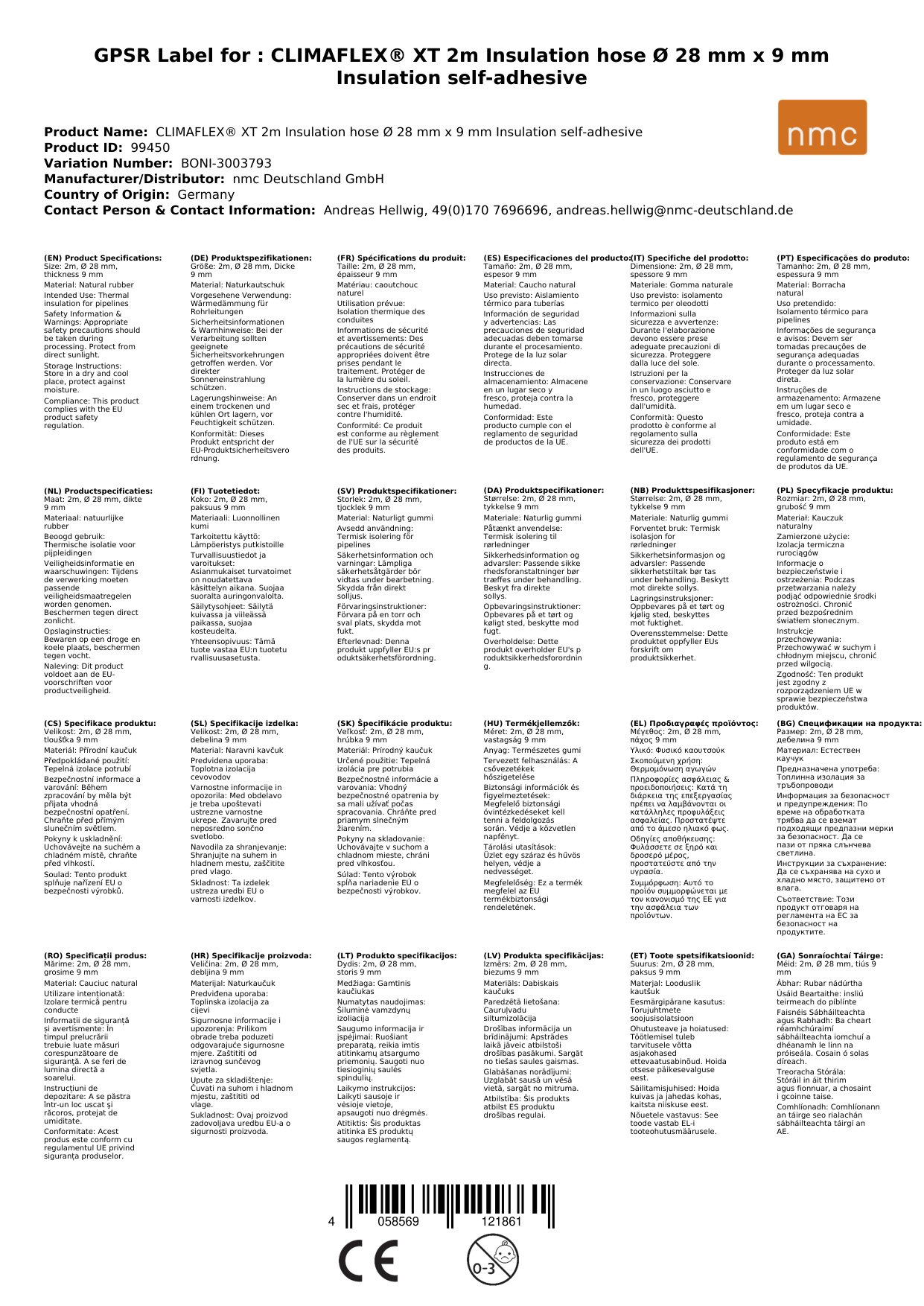 Cuir ceist chun níos mó a fhoghlaim faoin táirgeInsliú píopaí, Píobán inslithe 2m, Insliú féinghreamaitheach, Ø 28 mm x 9 mm