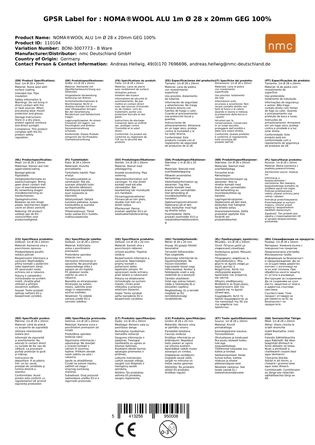 Cuir ceist chun níos mó a fhoghlaim faoin táirgeNOMA®WOOL ALU / CLIMATUBE® WOOL 1m Ø 28 x 20mm GEG 100%