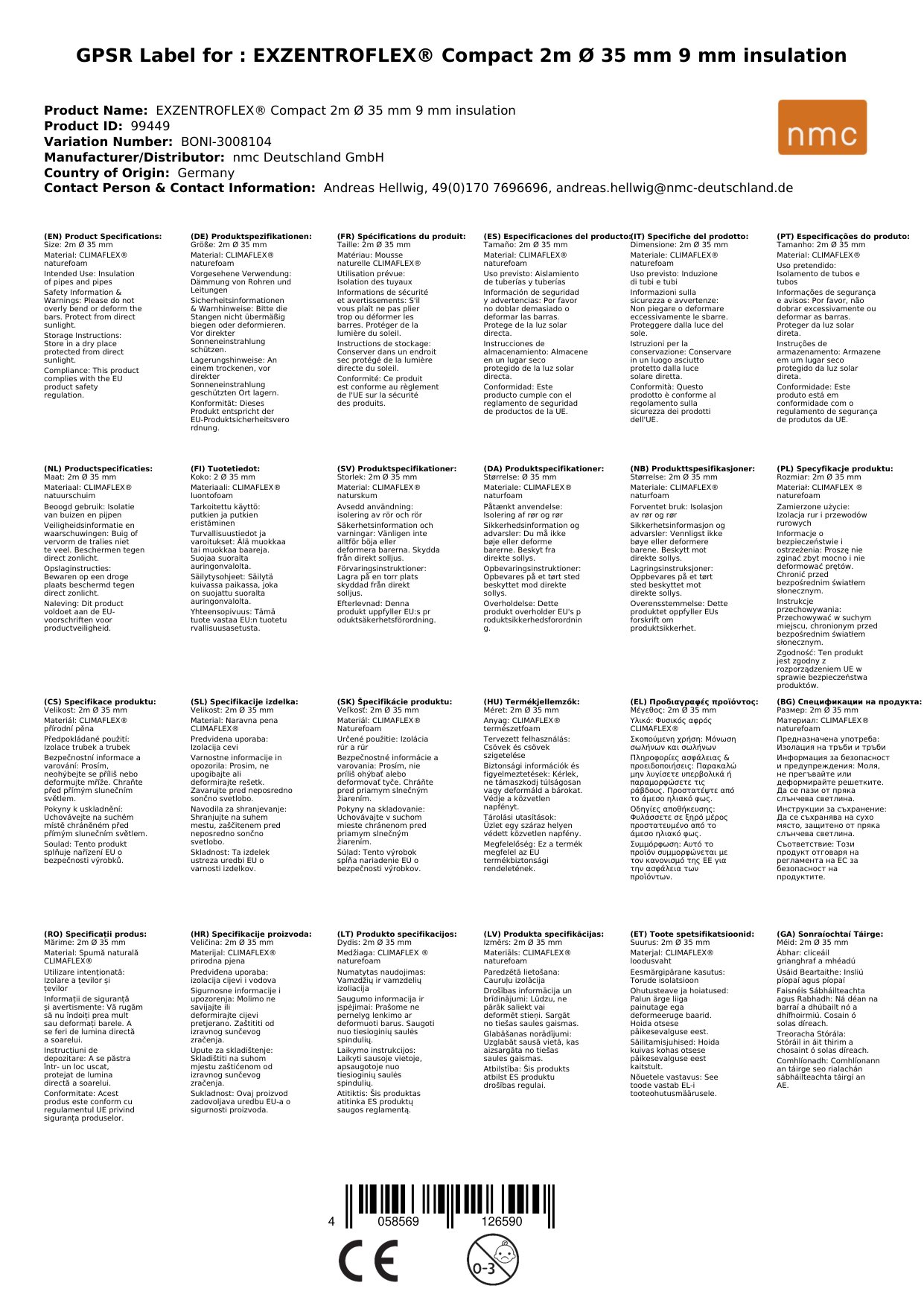 - Ábhar Ardchaighdeáin: Tá an insliú píopaí déanta as cúr polaetiléine cille dúnta le Naturefoam, atá comhdhéanta de 50% ar a laghad d'amhábhar in-athnuaite. Leis seo, tá tú ag cur go gníomhach le cosaint an chomhshaoil.