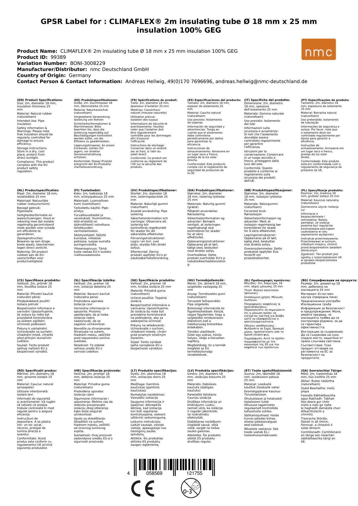 Cuireann ár insliú píopaí cosaint iontaofa ar fáil do do chórais téimh agus sláintíochta. Le trastomhas 18 mm agus tiús inslithe 25 mm, tá sé oiriúnach do phíopaí in áiteanna cónaithe. Cinntíonn comhlíonadh GEG go gcomhlíonann tú na ceanglais dhlíthiúla go léir. Seo an fáth go bhfuil sé tábhachtach duit: sábhálann tú fuinneamh agus laghdaíonn tú do chostais téimh, agus ag an am céanna ag cosaint an chomhshaoil.