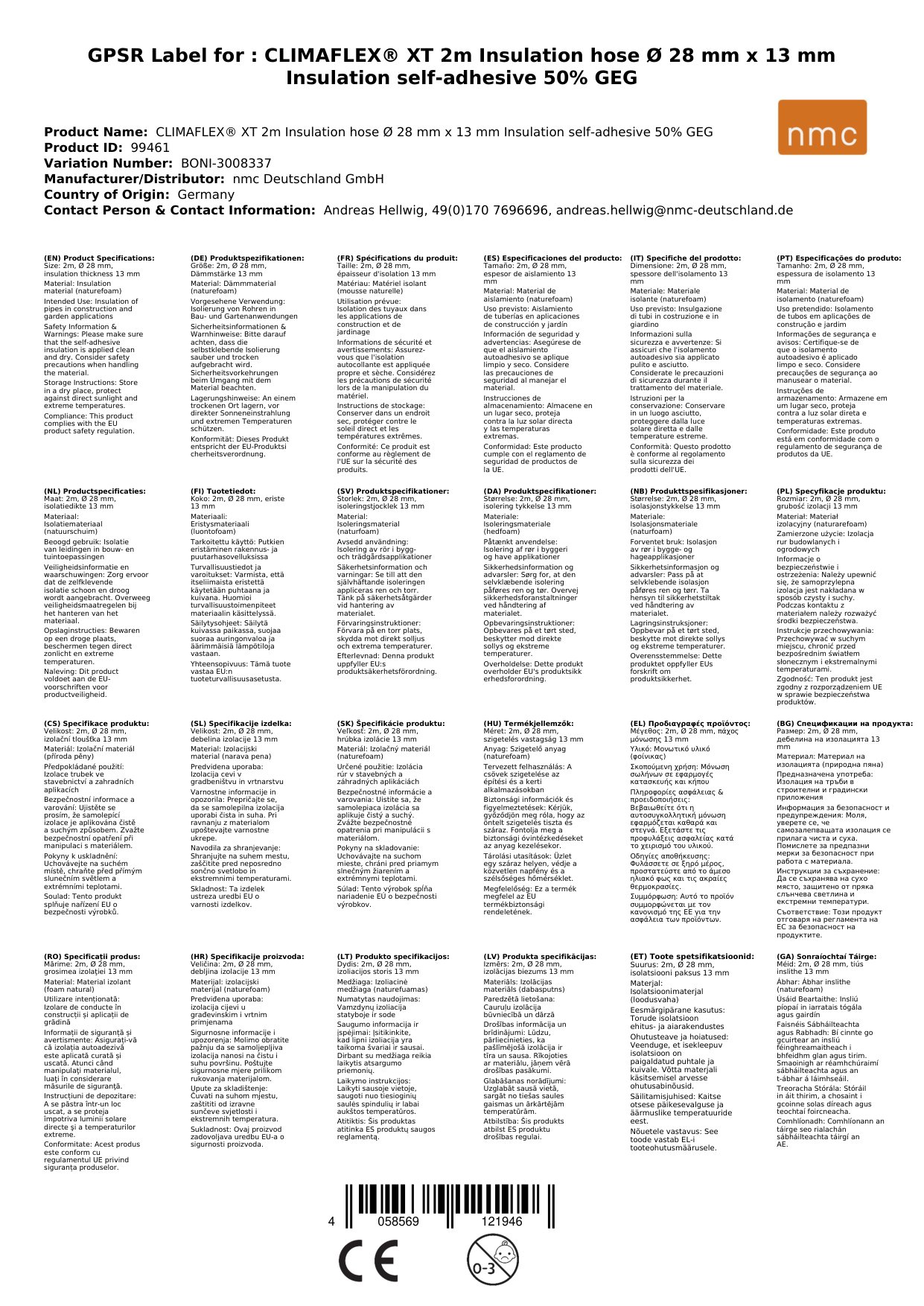 Cuir ceist chun níos mó a fhoghlaim faoin táirgeFeadán Inslithe 2m, Insliú Píopaí Ø 28 mm x 13 mm, Féinghreamaitheach