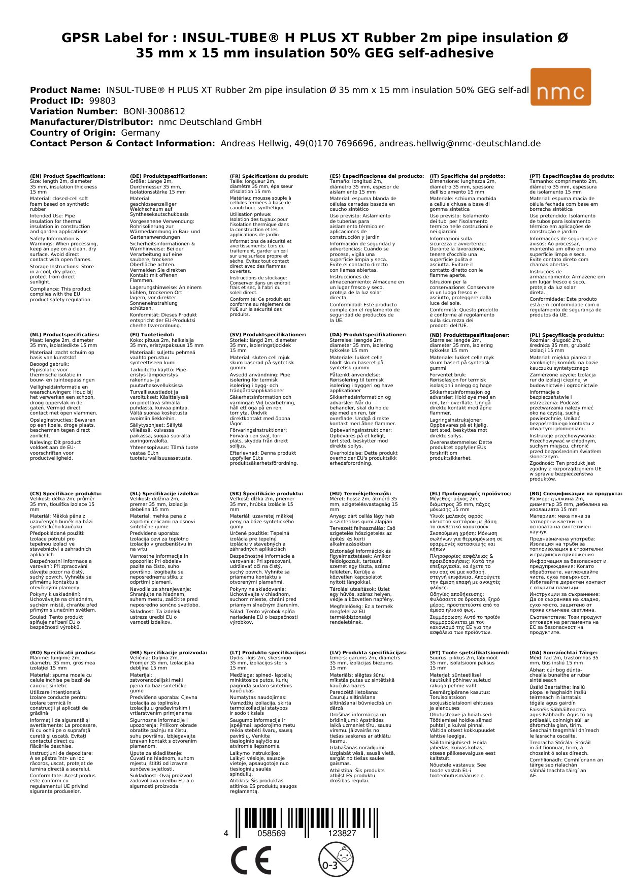 INSUL-TUBE® H PLUS XT Rubar 2m Insliú Píobáin Ø 35 mm x 15 mm Insliú 50% GEG féin-ghreamaitheach