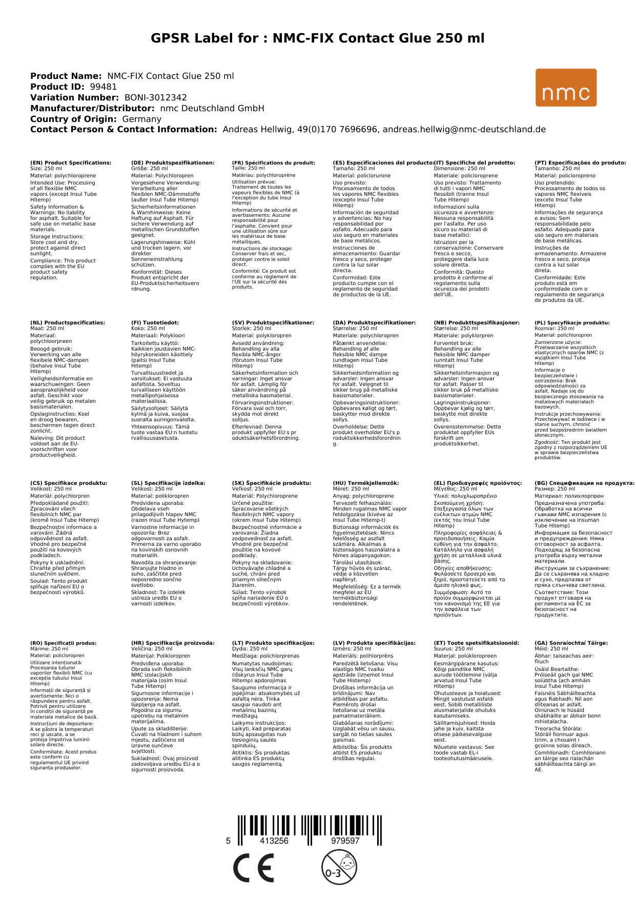 Tá an Gliú Teagmhála NM FIX 250ml bunaithe ar polachlórapráin agus tá sé deartha go speisialta le haghaidh ábhair inslithe solúbtha NMC a phróiseáil. Cinntíonn a fhoirmle greamaitheacht láidir, fiú ar dhromchlaí miotalacha. Tagann an gliú seo le scuab freisin, rud a fhágann go bhfuil sé éasca le cur i bhfeidhm. Leis an ngliú seo, is féidir leat a bheith cinnte go bhfuil greamaitheacht láidir agus buan agat ar éagsúlacht na n-ábhar.