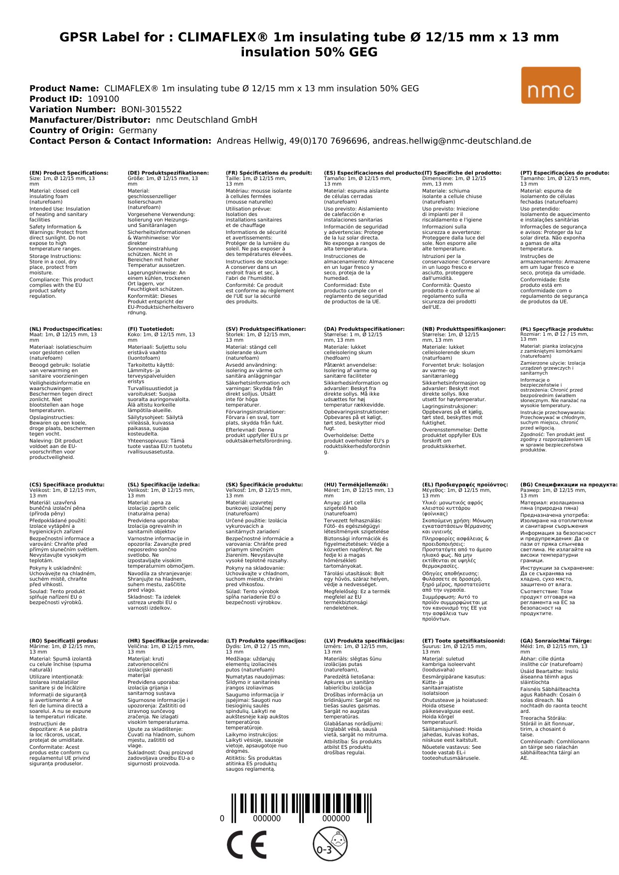 Cuir ceist chun níos mó a fhoghlaim faoin táirgeInsliú píopaí 1m, Clúdach píopa inslithe Ø 12/15 mm x 13 mm
