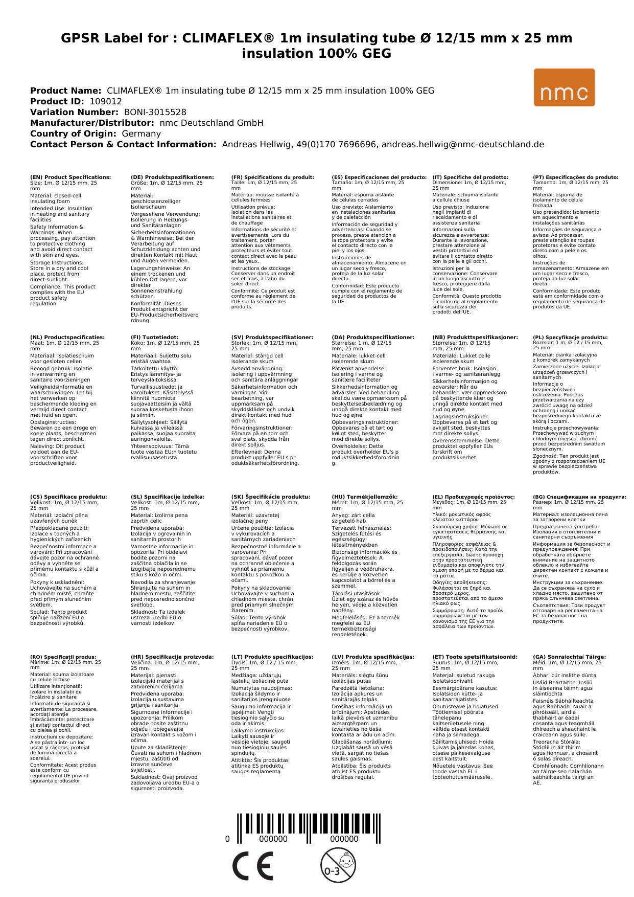 Cuir ceist chun níos mó a fhoghlaim faoin táirgeInsliú píopaí, Feadáin inslithe 1m, Ø 12/15 mm x 25 mm
