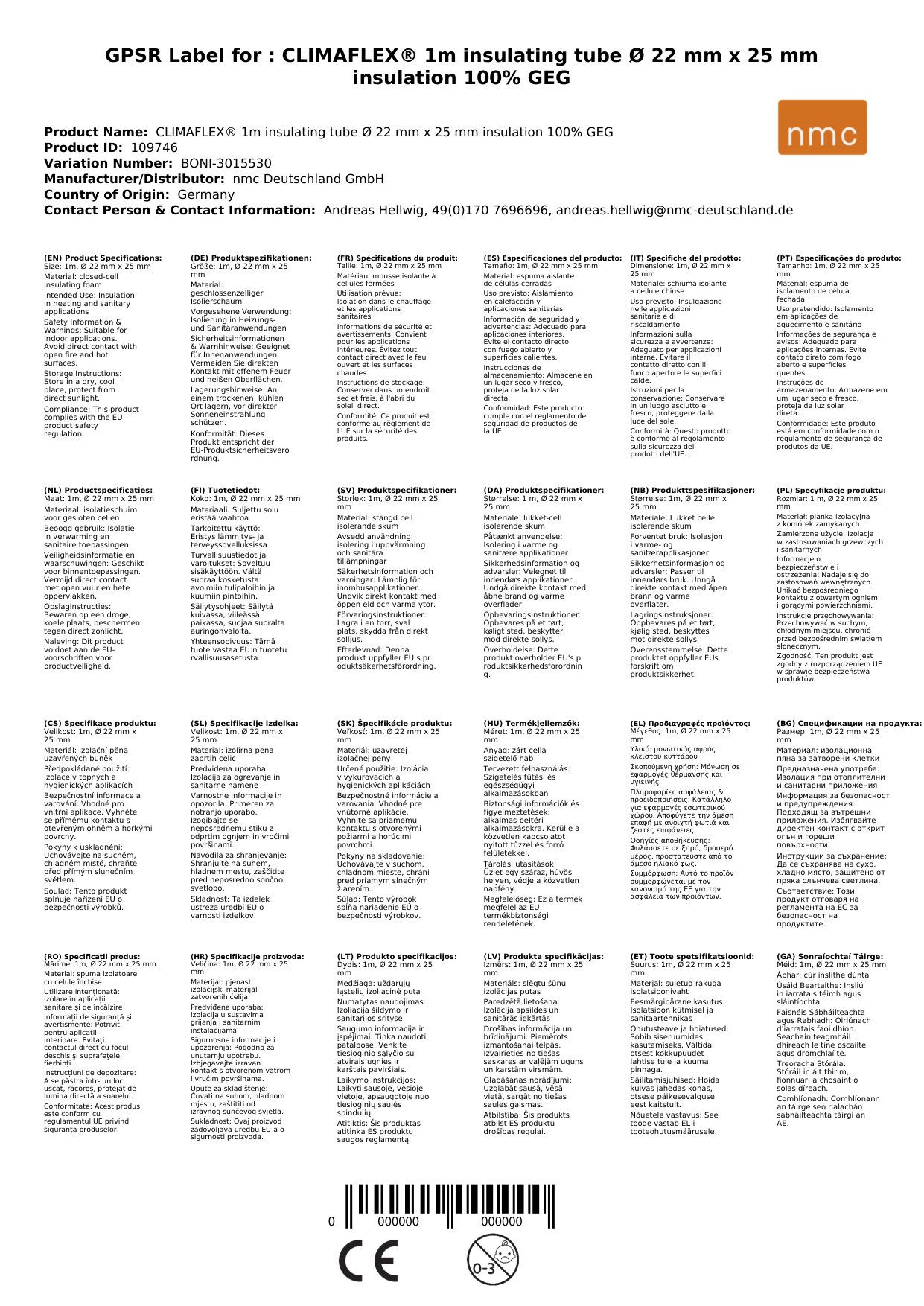 Cuir ceist chun níos mó a fhoghlaim faoin táirgeSlat Insliúcháin 22mm, Insliú Píopaí 1m, Isolierschlauch Ø 22 mm x 25 mm