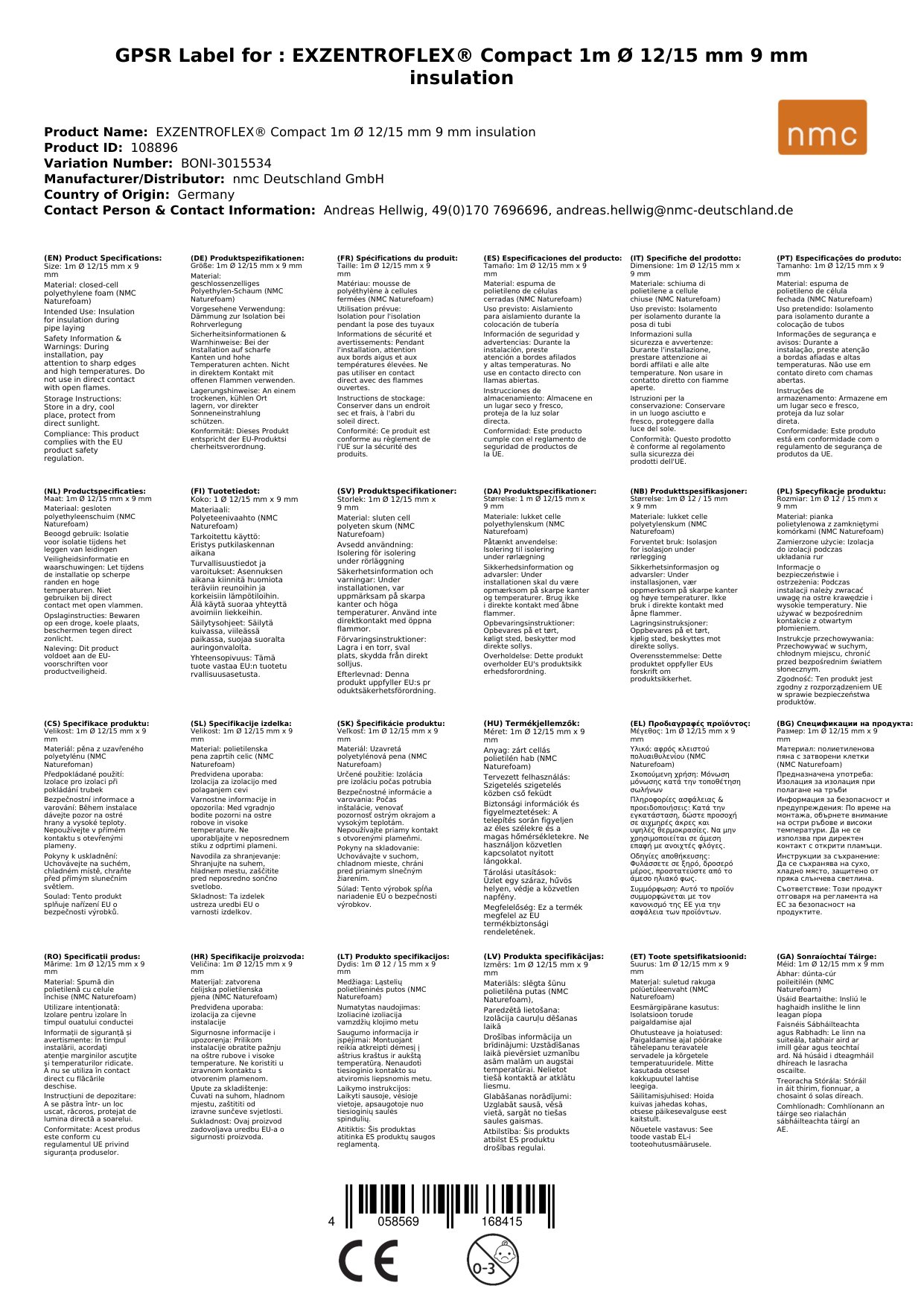 Tá an píopa inslithe seo deartha chun do phíopaí a chosaint go héifeachtach. Le trastomhas inmheánach 12/15 mm agus insliú 9 mm, cuireann sé cosaint teasa den scoth ar fáil. Is é an fad 1 méadar, rud a fhágann go bhfuil sé éasca a láimhseáil agus a shuiteáil. Cinntíonn sé caomhnú fuinnimh agus cosnaíonn sé do phíopaí ó dhamáiste.