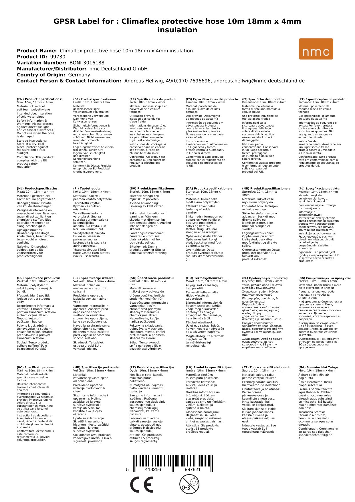 An bhfuil tú ag lorg réiteach iontaofa chun do phíopaí uisce fuar nó téimh a chosaint go héifeachtach ó chaillteanas teasa agus sioc? Tairgeann CLIMAFLEX® protect insliú píopaí díreach é sin. Tá an feadán inslithe solúbtha seo déanta as cúr bog polaitiléin éasca le suiteáil agus cinntíonn sé insliú optamach do do phíopaí. Cosain do shuiteálacha agus sábháil costais fuinnimh leis an insliú píopaí ardcháilíochta seo.