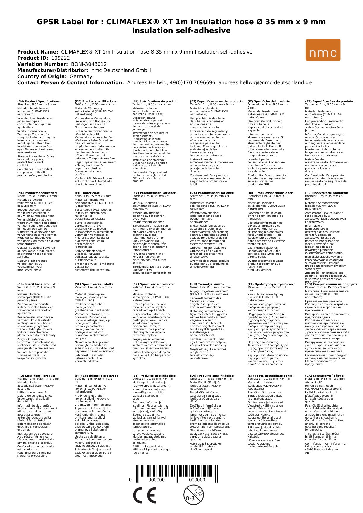 Cuir ceist chun níos mó a fhoghlaim faoin táirgeFeadán inslithe féinghreamaitheach, insliú píopaí 35mm, 1m, Ø 35 mm x 9 mm, féinghreamaitheach