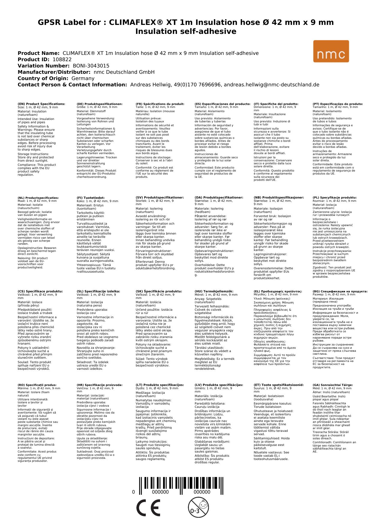 Tá an píobán inslithe féinghreamaitheach seo deartha chun insliú éifeachtach a sholáthar do do phíopaí. Le trastomhas 42mm agus tiús inslithe 9mm, cuireann sé cosaint den scoth ar chaillteanas teasa agus reo. Tá an ghné féinghreamaitheach áisiúil le haghaidh suiteáil tapa agus éasca. Cén fáth a bhfuil sé seo tábhachtach duit: is féidir leat a bheith cinnte go mbeidh do phíopaí cosanta agus go laghdófar do chostais fuinnimh.