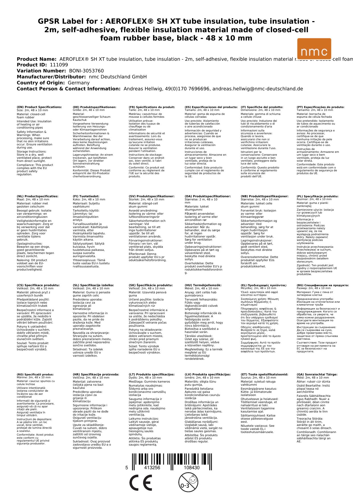 Optimieren Sie die Isolierung Ihrer Heizungs- oder Klimaanlagenrohre mit der 2 Meter langen AEROFLEX® SH XT Rohrisolierung. Dieses feuchte Gewebe besteht aus flexiblem, geschlossenzelligem Schaumstoff auf Gummibasis und bietet eine hervorragende Isolierung gegen Wärmeverlust. Die selbstklebende Schicht sorgt für eine einfache Montage und bleibt fest haften.