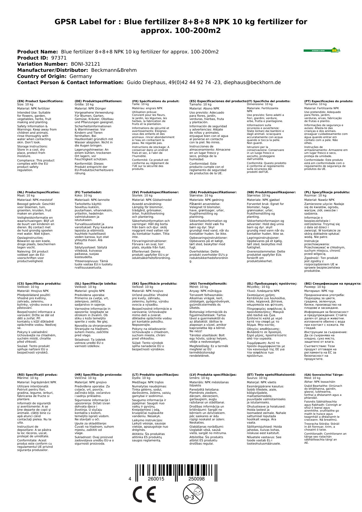 Leasach NPK 8+8+8, 10kg, Leasach Uilechuspóireach Granular