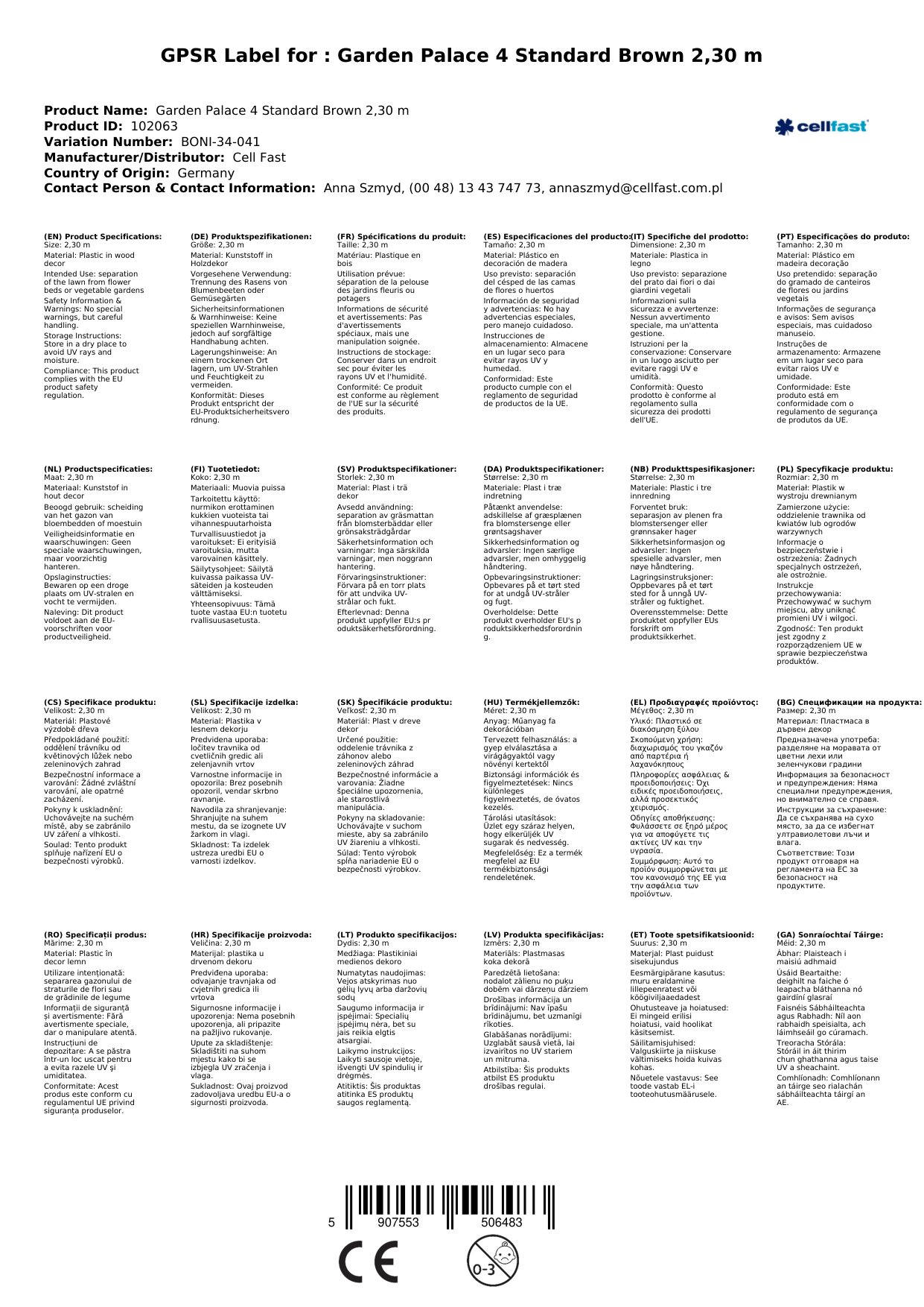 Cuireann ár bpalla gairdín réiteach simplí agus éifeachtach ar fáil chun do ghairdín a dhearadh. Cinntíonn an dromchla maisiúcháin adhmaid cuma nádúrtha. A bhuíochas leis an bhfriotaíocht UV agus fuar, tá an palla fada buan agus frithsheasmhach. Is féidir leat brath ar thionól éasca gan uirlisí. Cén fáth go bhfuil sé sin tábhachtach duit: Sábhálann tú am agus iarracht agus tú ag dearadh do ghairdín agus bainfidh tú leas as réiteach álainn fadtéarmach.