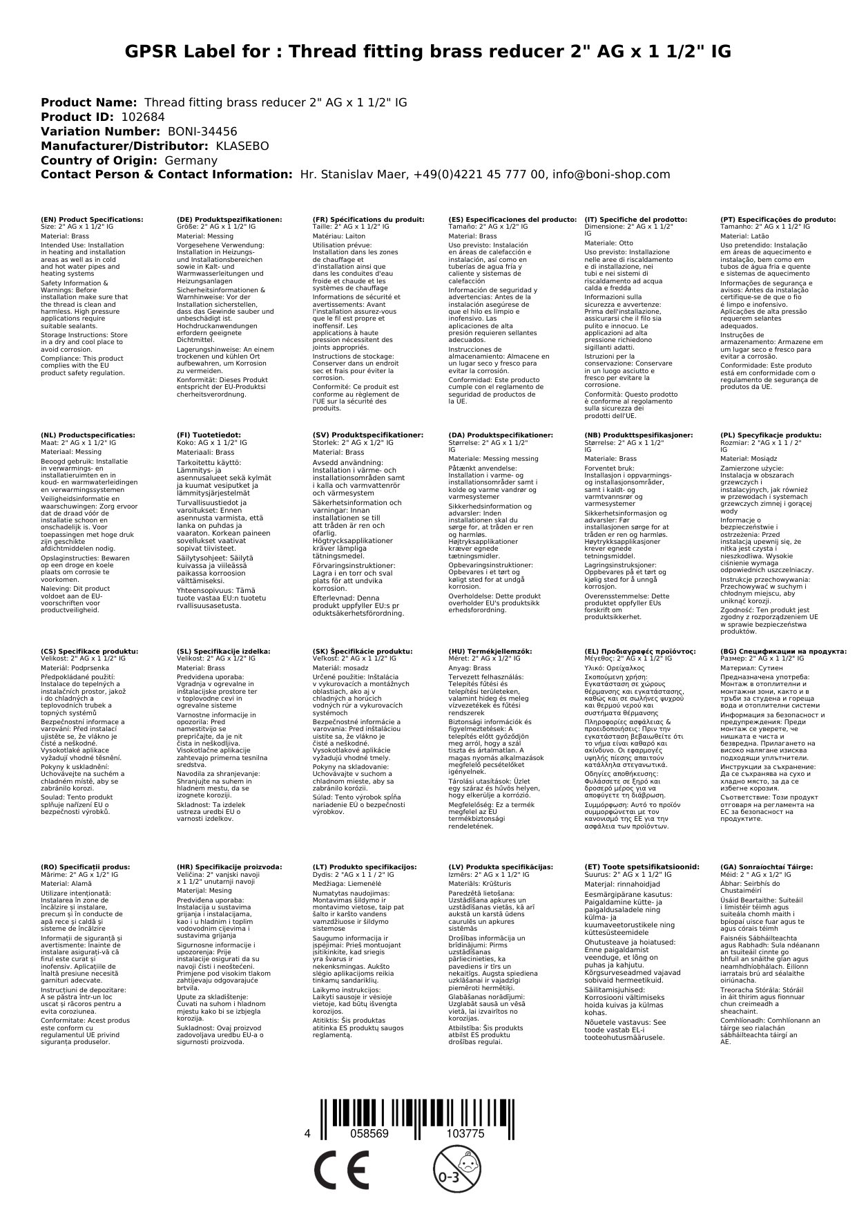 Laghdaitheoir Práis, Feistiú Snáithe Práis, 2" AG x 1 1/2" IG