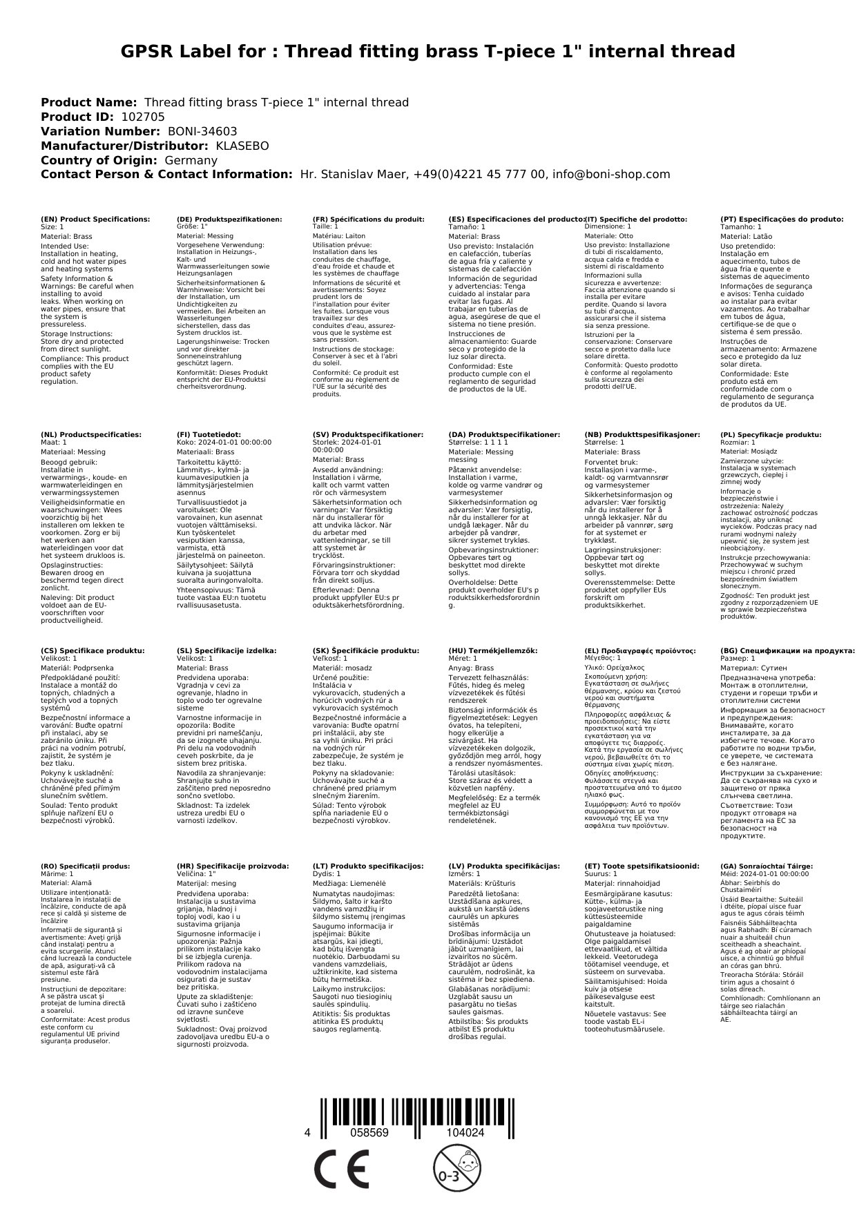 Cuireann ár bhfeistiú práis T-píosa nasc ardchaighdeáin ar fáil do do chórais. Déanta as práis CW617N de réir na rialachán uisce óil, ráthaíonn sé an caighdeán agus an tsábháilteacht is airde. Cinntíonn an foirgneamh láidir agus na snáitheanna beachta suiteáil éasca agus nasc buan daingean. Faigheann tú táirge buan agus iontaofa a chomhlíonann na héilimh is airde.